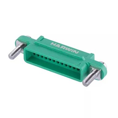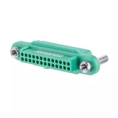 Female Double Row Crimp Connector Housing - 26 (13+13) contacts. Fitted with threaded Screw-Lok fixings (for reverse fixing) with 5.2mm panel mount studs. Use slotted nut G125-4510000B for front panel mounting.
