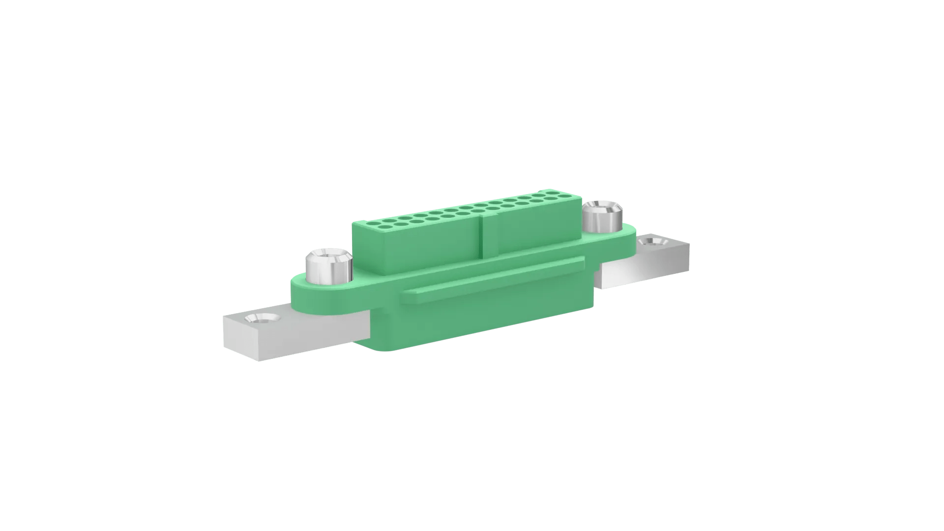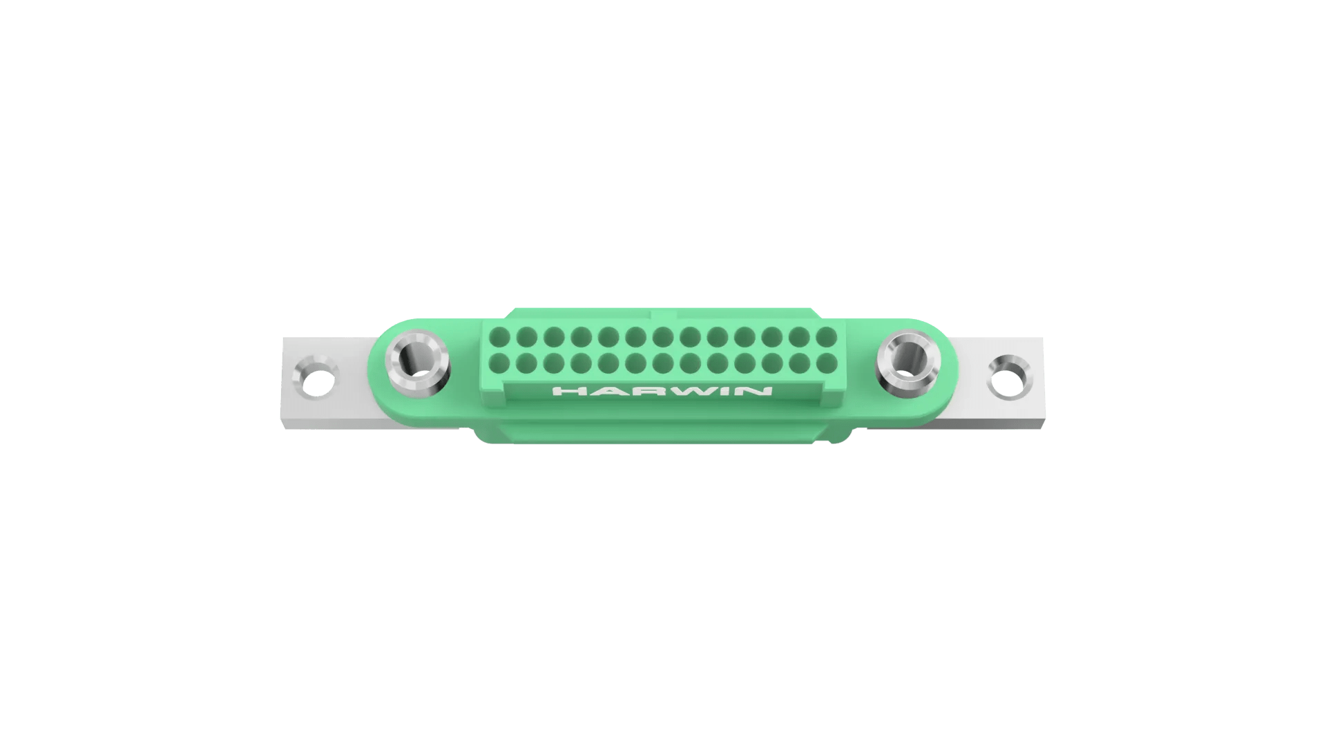 Female Double Row Crimp Connector Housing - 26 (13+13) contacts. Fitted with threaded Screw-Lok fixings (for reverse fixing) with extended lugs for rear panel mount. Use hex socket bolt G125-4520000B for mounting to panels up to 3mm thickness.