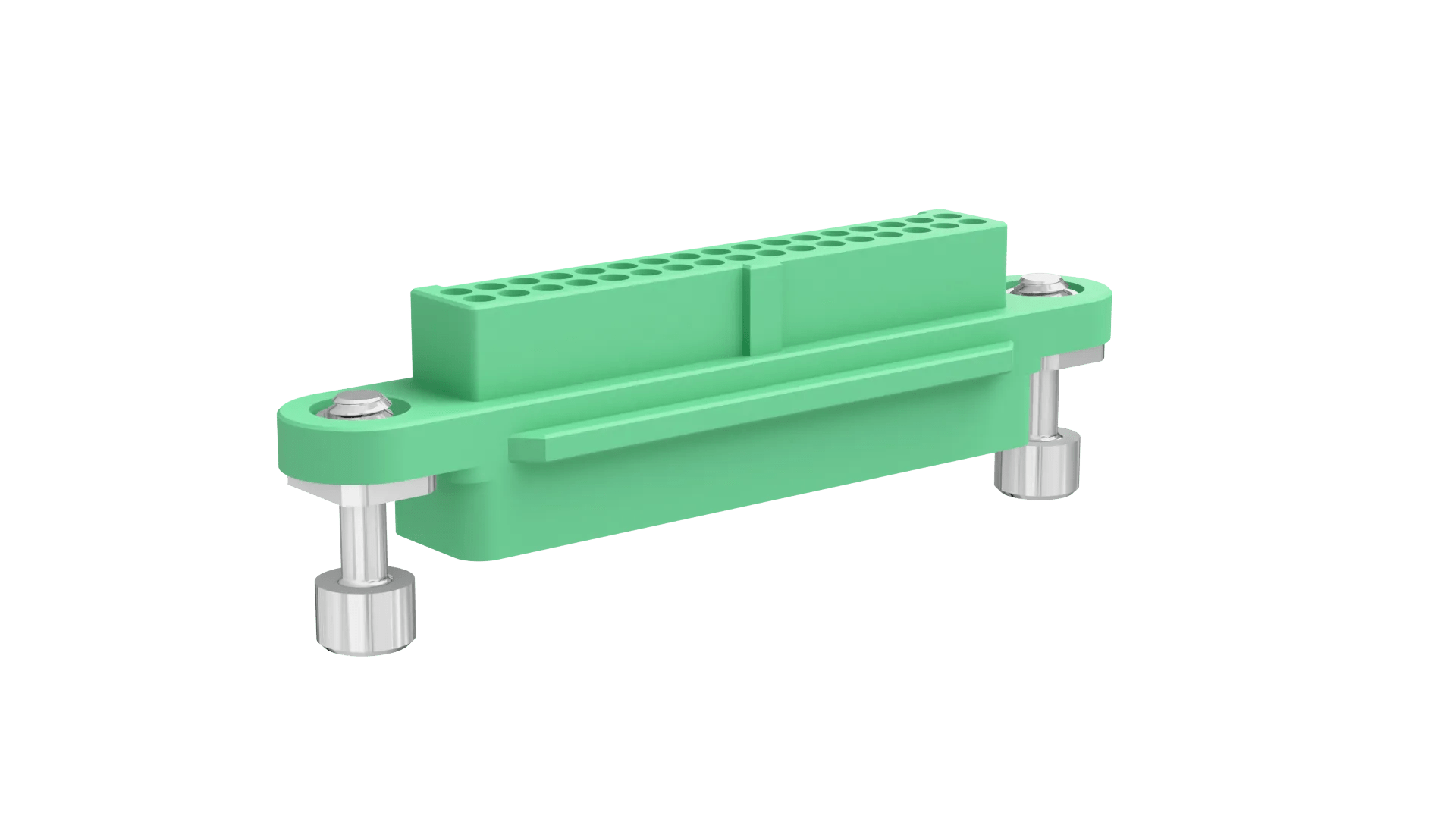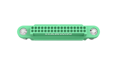 Female receptacle Double Row straight cable connector housing - 34 contacts (17+17). Fitted with floating Screw-Lok fixings including a hexagonal socket head - mate-before-lock.