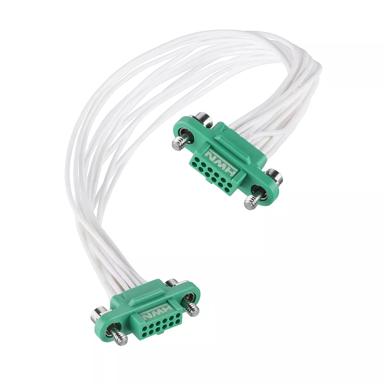 Female-to-Female with white 26 AWG cable, 150mm (6") long - 12 contacts (6+6). Fitted with floating Screw-Lok fixings, Hexagonal socket head, Mate-before-Lock.