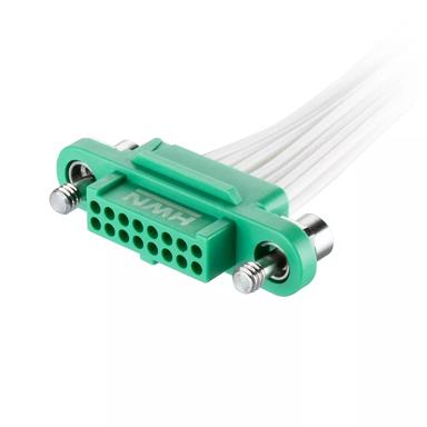 Female-to-Female with white 26 AWG cable, 300mm (12") long - 16 contacts (8+8). Fitted with floating Screw-Lok fixings, Hexagonal socket head, Mate-before-Lock.