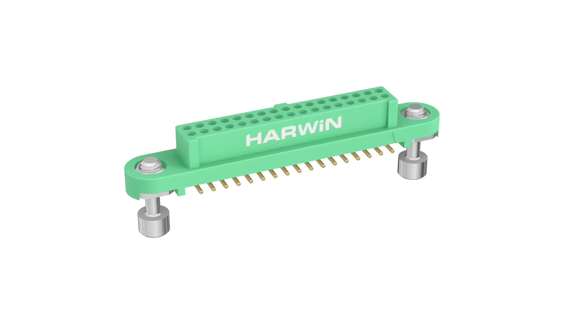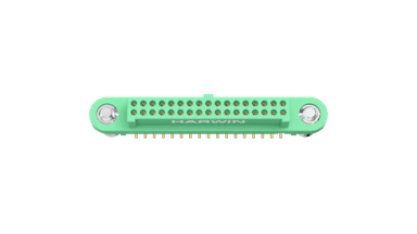 Female Double Row Vertical Surface Mount connector - 34 contacts (17+17). Fitted with floating Screw-Lok fixings, Hexagonal socket head, Mate-before-Lock.