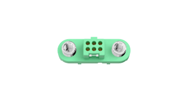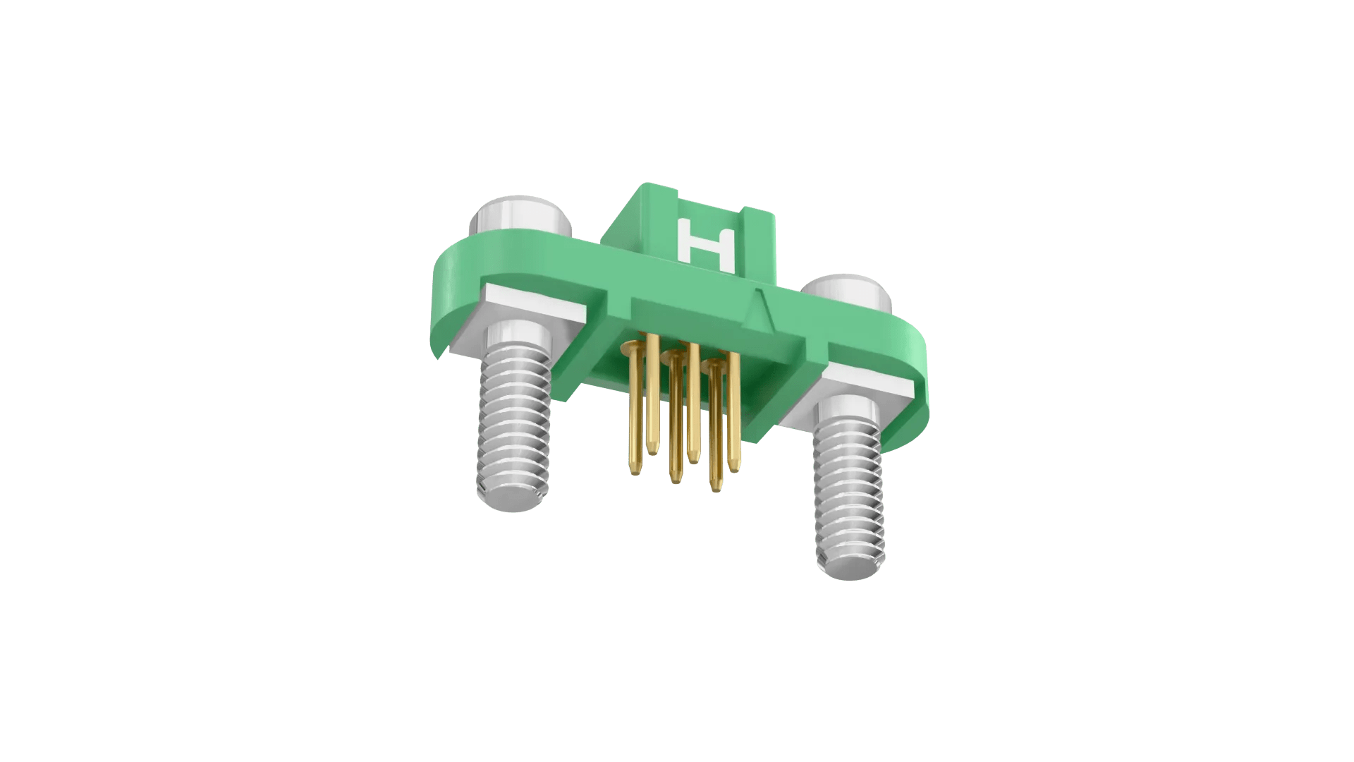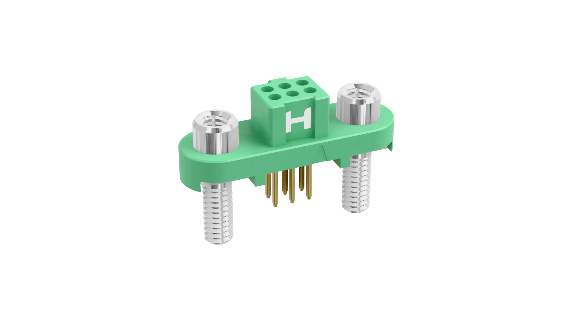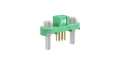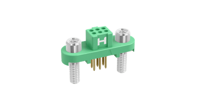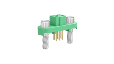 Female Double Row Vertical 3mm PC Tail connector - 6 contacts (3+3). Fitted with threaded Screw-Lok fixings (for reverse fixing) with 5mm board mount studs. Use hex nut G125-4500000B or slotted nut G125-4510000B for PCB strain relief.