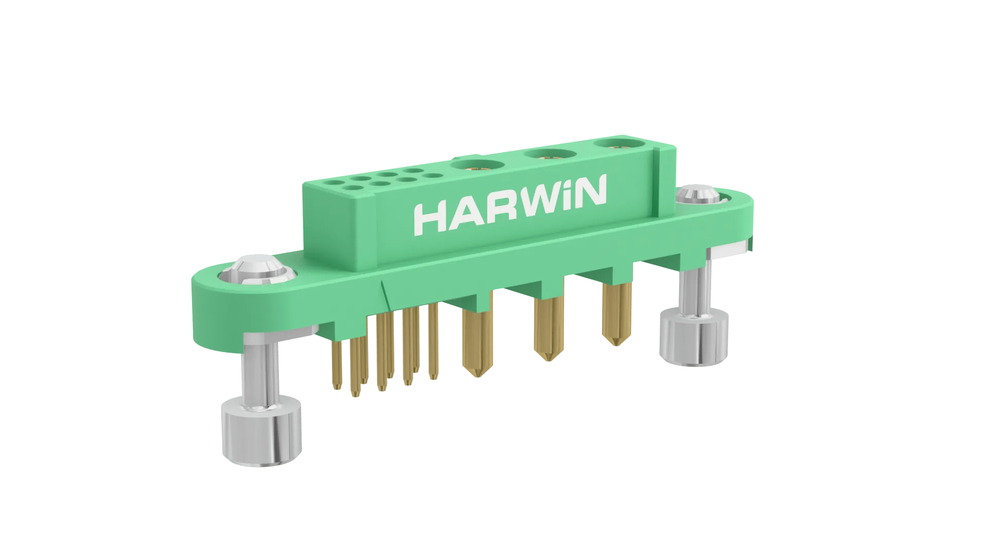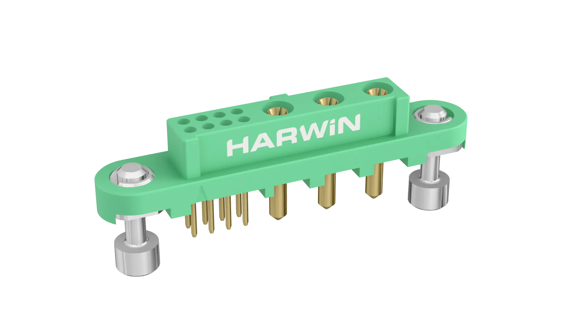 Female Vertical Throughboard connector - 3 power, 8 signal contact arrangement. Power contacts are 3.6mm termination length, signal are 3mm. Fitted with floating Screw-Lok fixings including a hexagonal socket head, Mate-before-Lock.