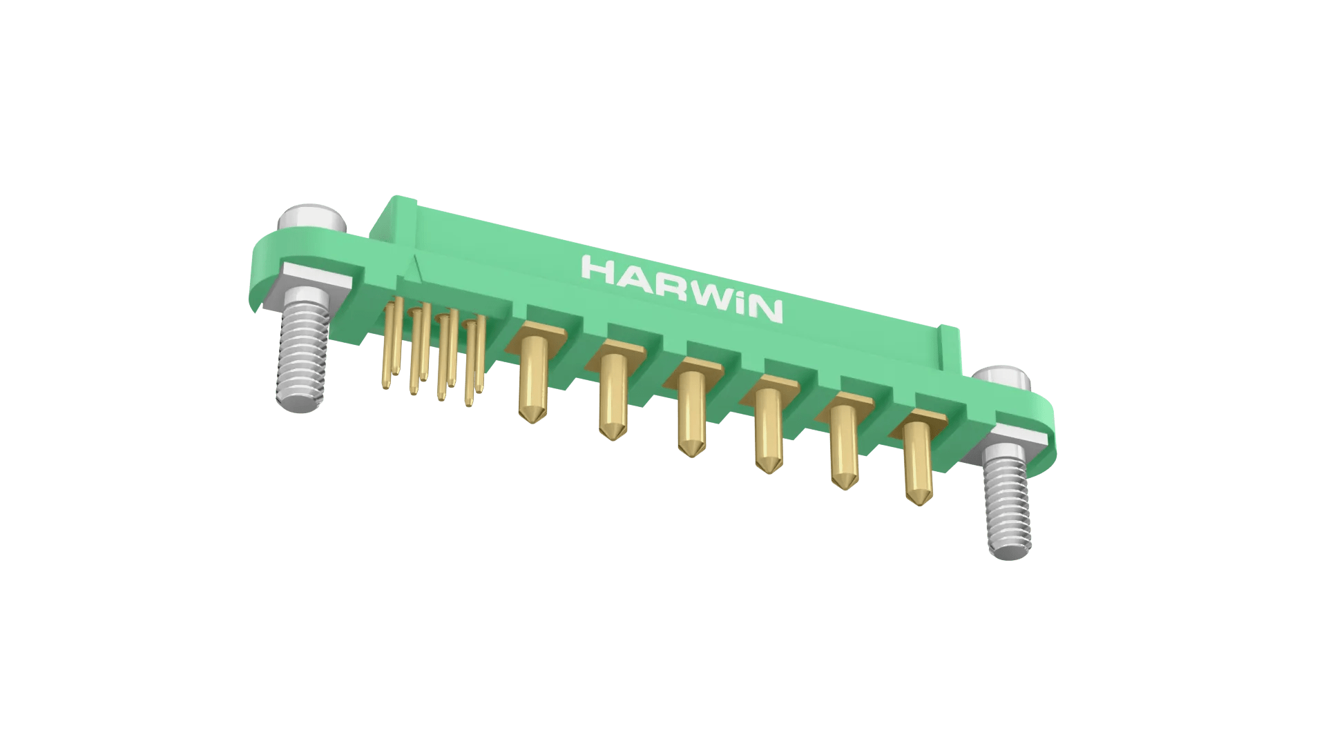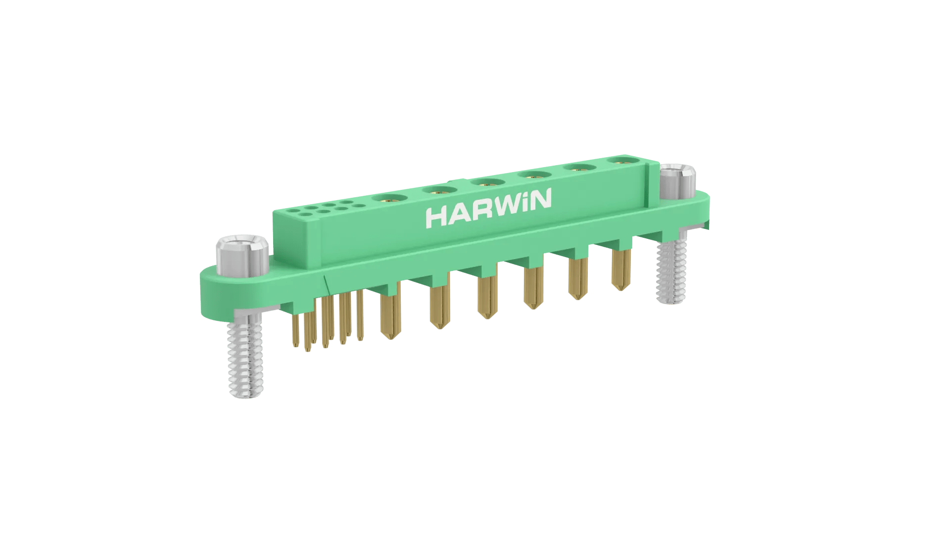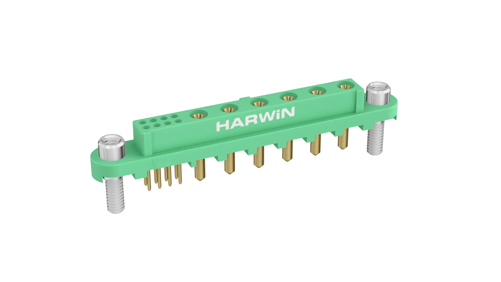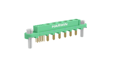 Female Vertical Throughboard connector - 6 power, 8 signal contact arrangement. Power contacts are 3.6mm termination length, signal are 3mm. Fitted with threaded Screw-Loks (for reverse fixing) with 5mm board mount studs. Use hex nut G125-4500000B or slotted nut G125-4510000B for PCB strain relief.