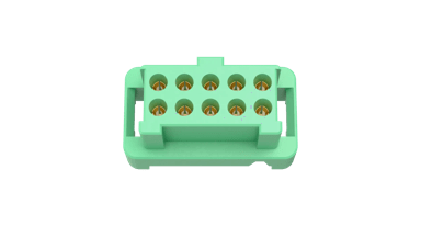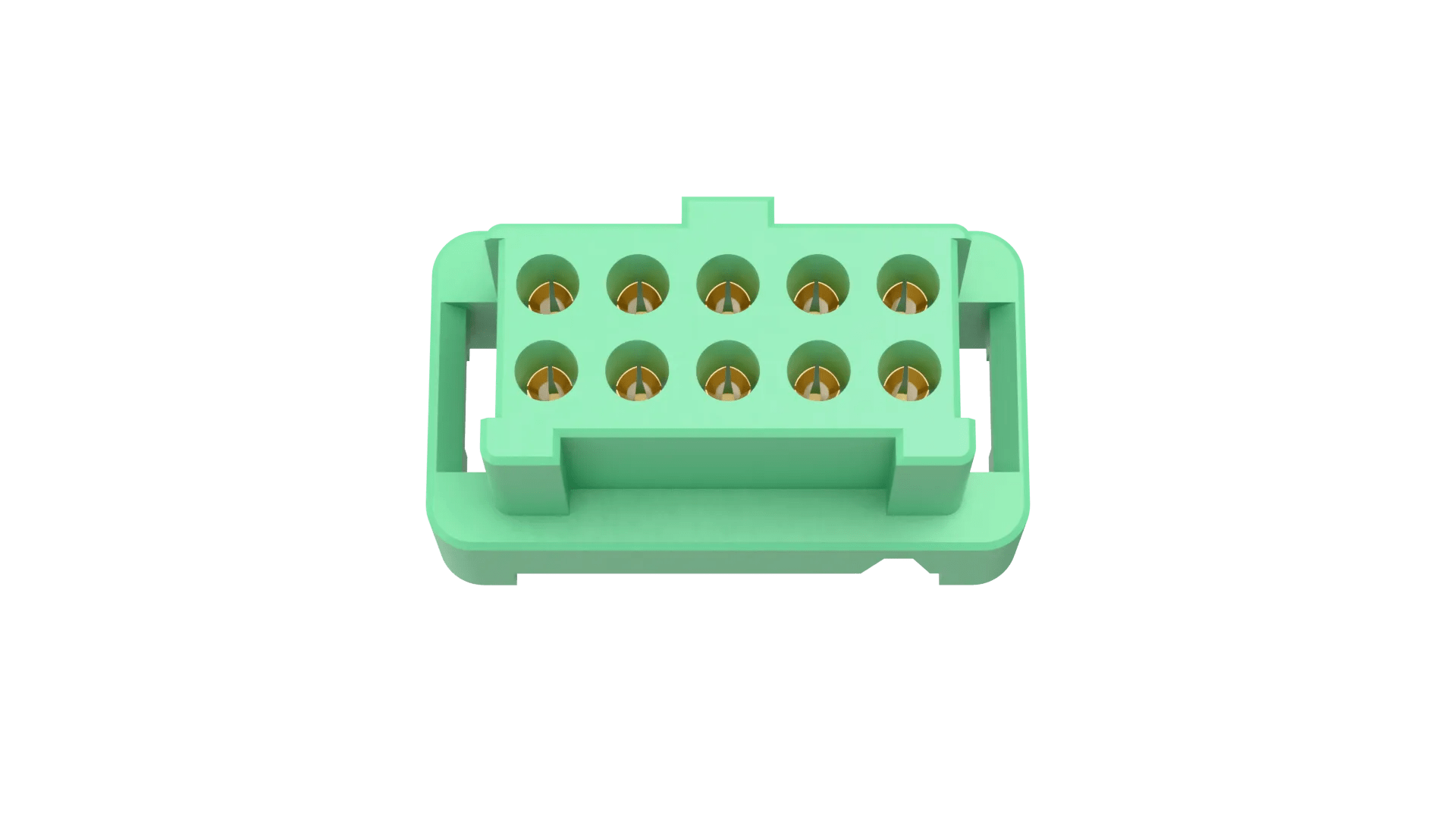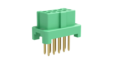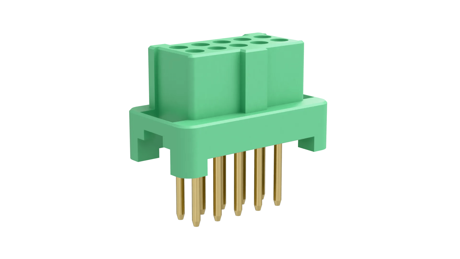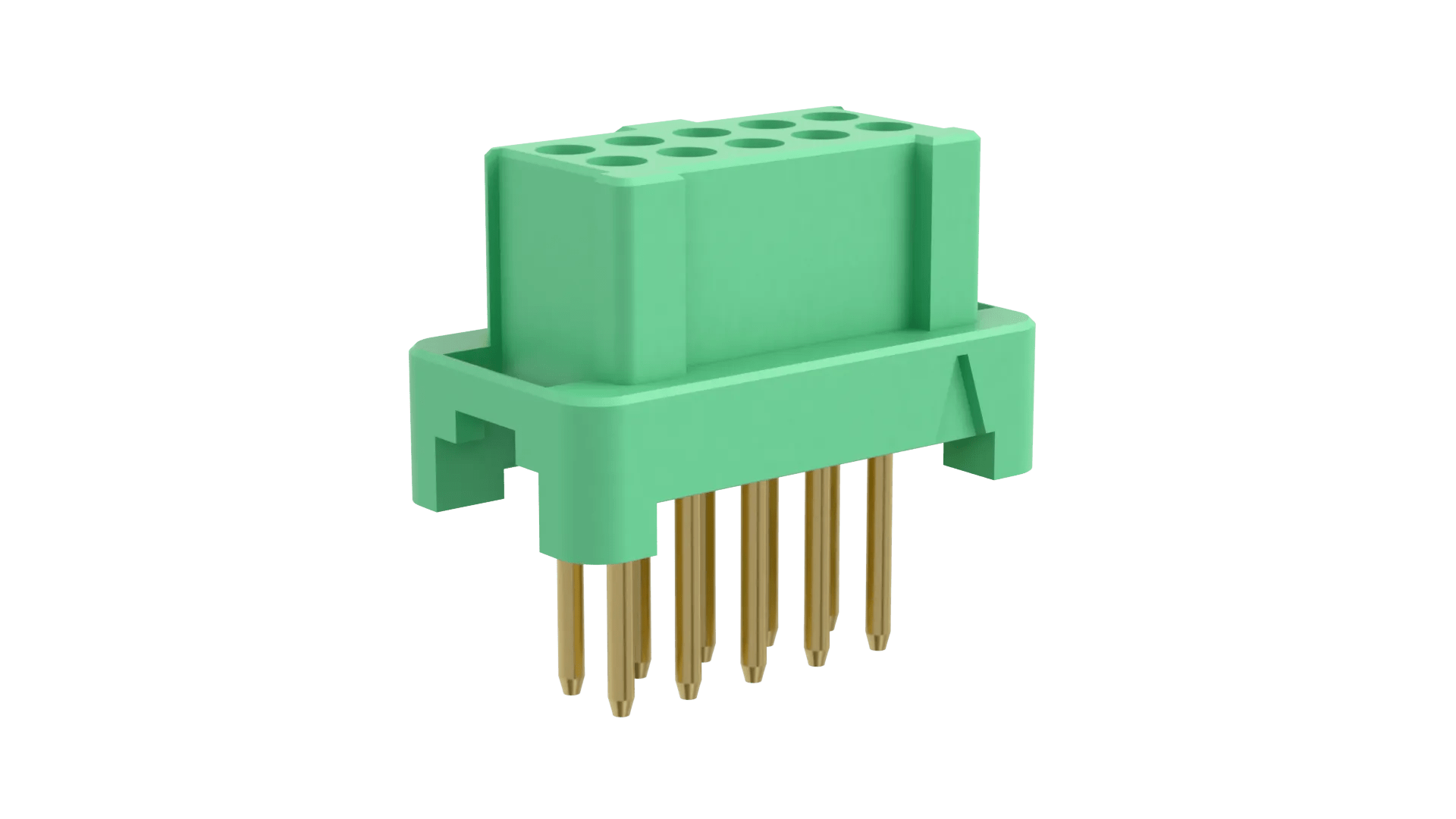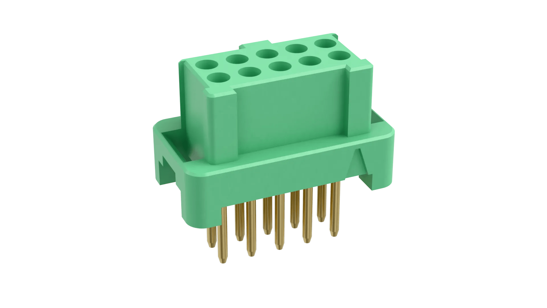 Female Double Row Vertical 3mm PC Tail connector - 10 contacts (5+5). Compatible housing style for male connectors with latches.