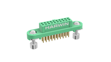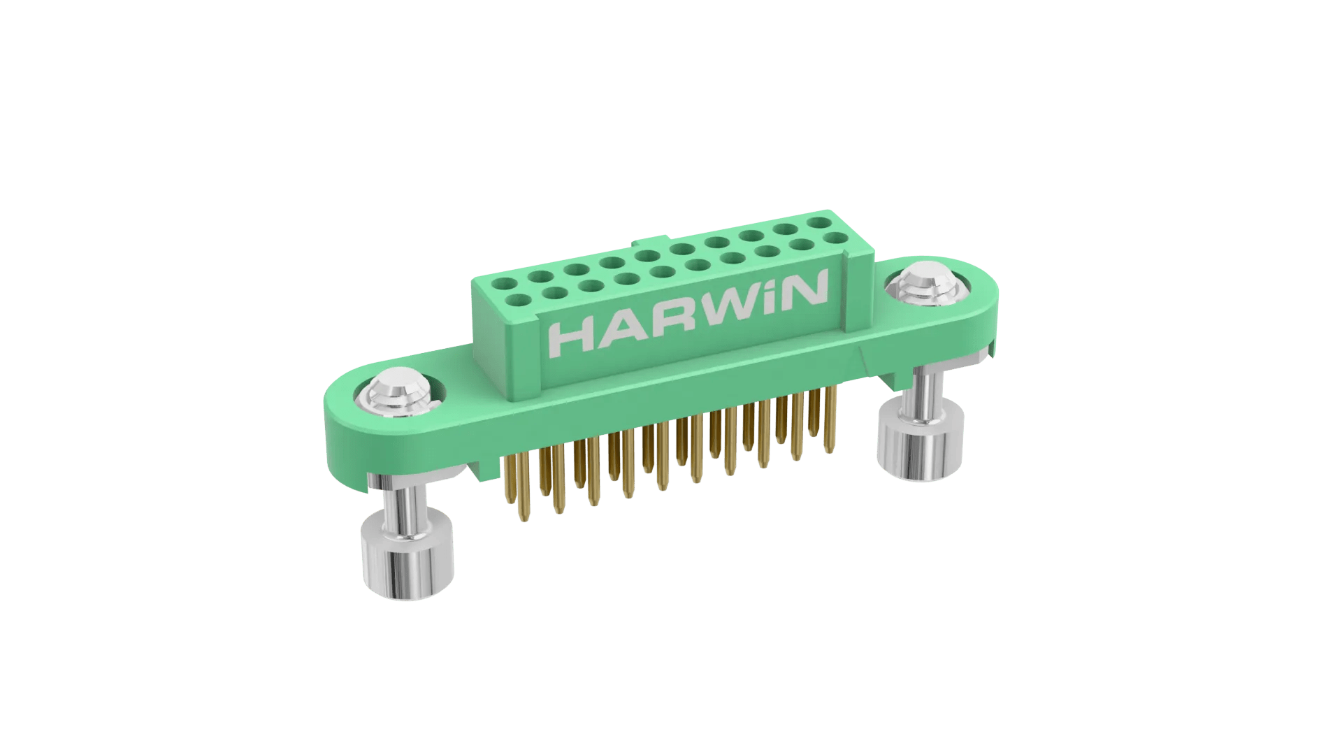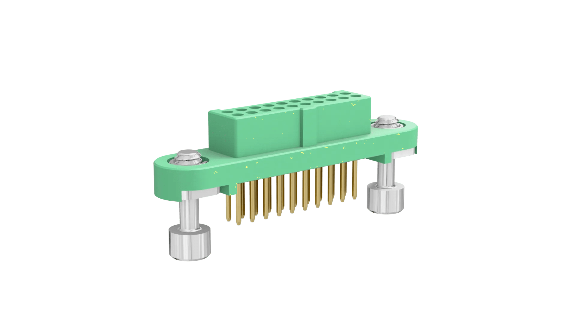 Female Double Row Vertical 3mm PC Tail connector - 20 contacts (10+10). Fitted with floating Screw-Lok fixings, Hexagonal socket head, Mate-before-Lock.