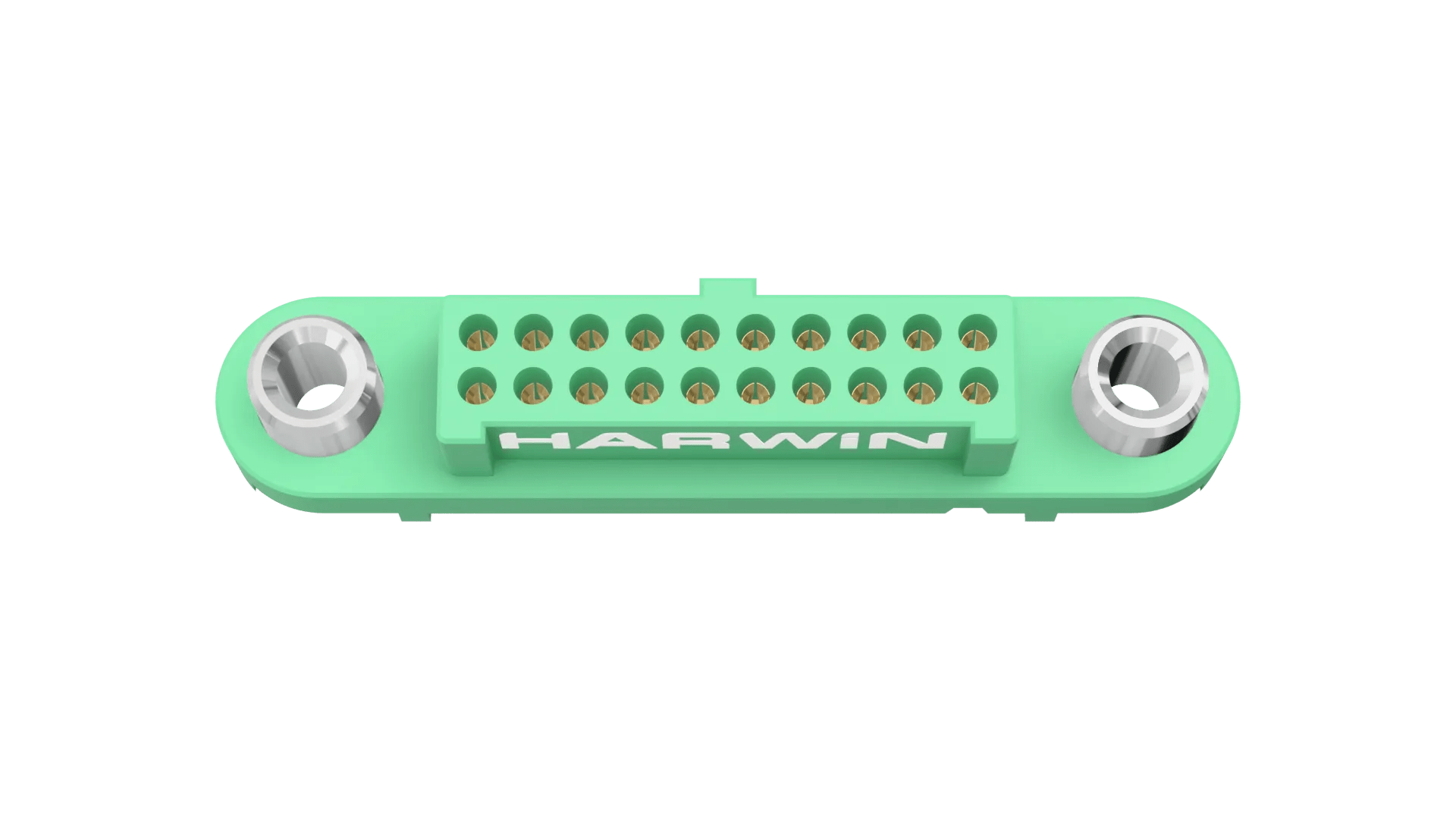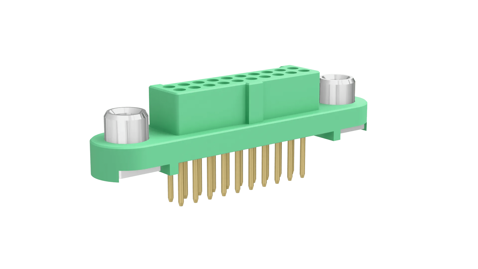 Female Double Row Vertical 3mm PC Tail connector - 20 contacts (10+10). Fitted with internally threaded Screw-Loks, for reverse fixing.