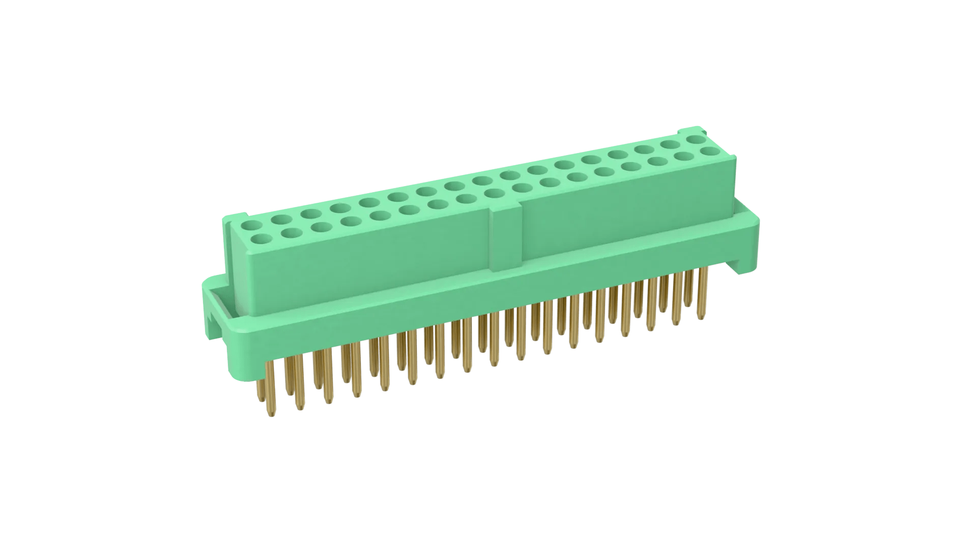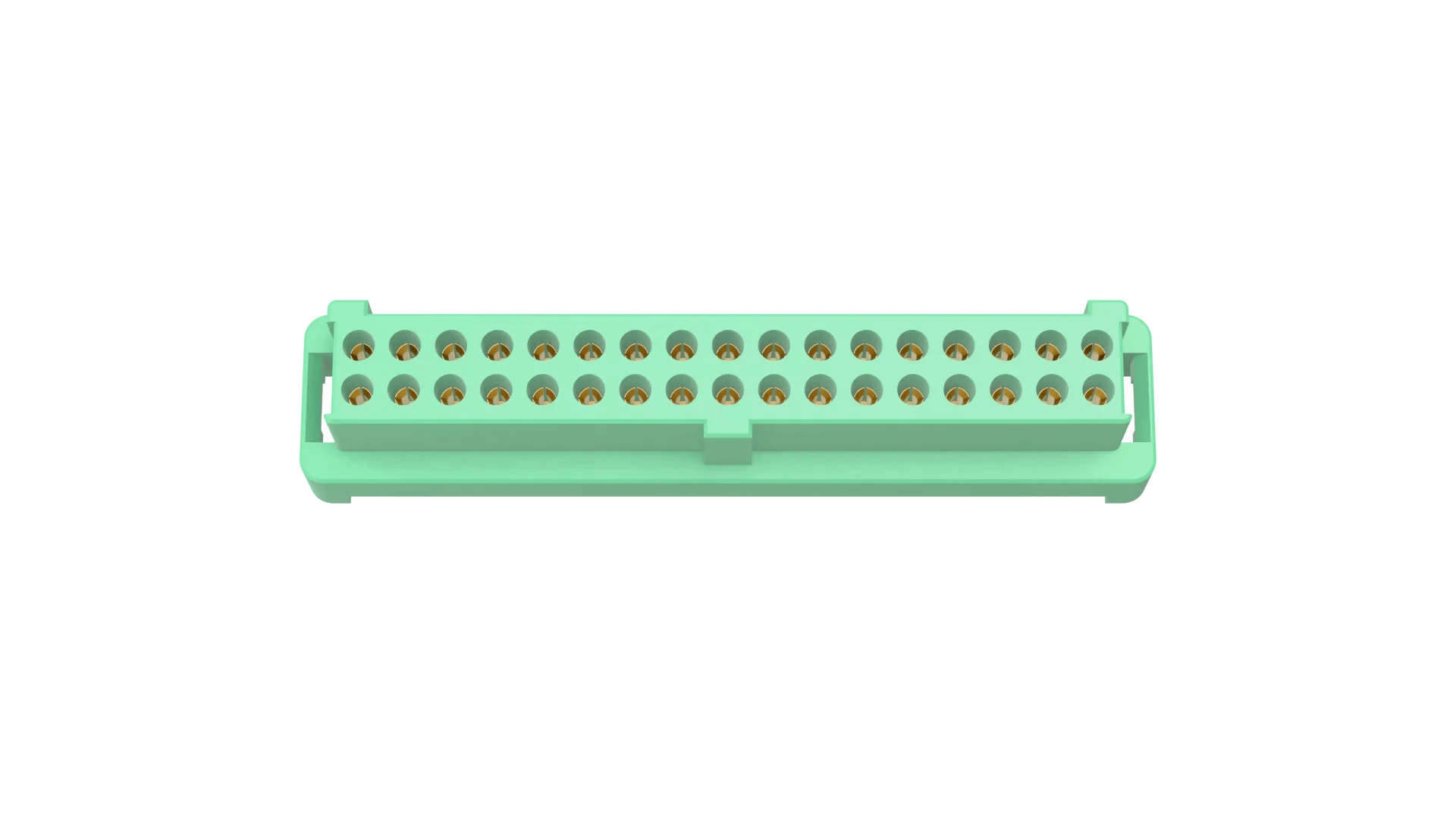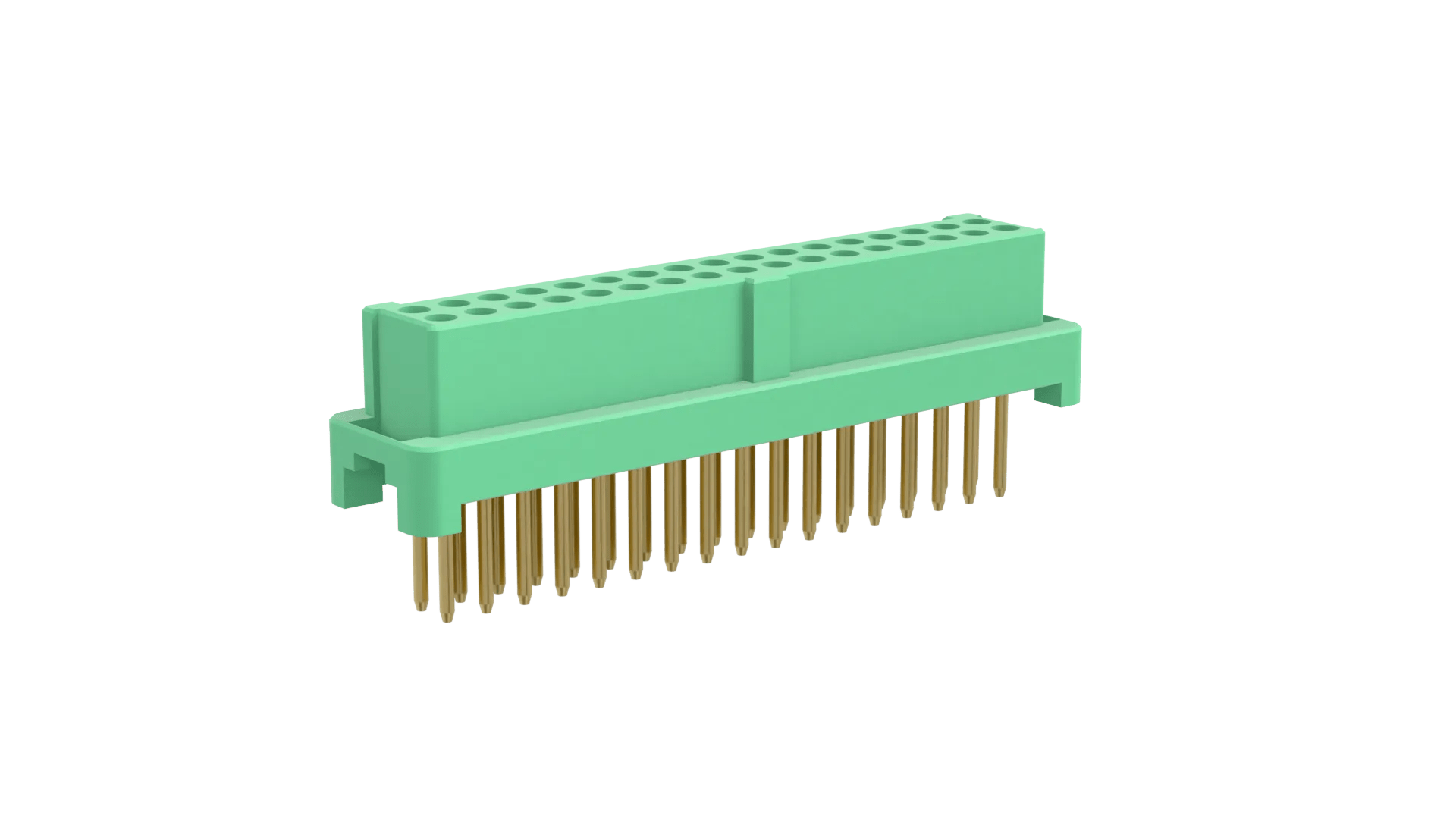 Female Double Row Vertical 3mm PC Tail connector - 34 contacts (17+17). Compatible housing style for male connectors with latches.