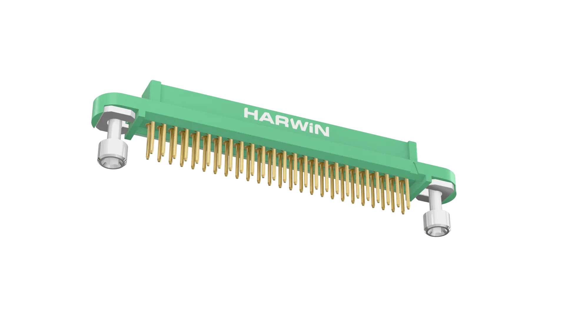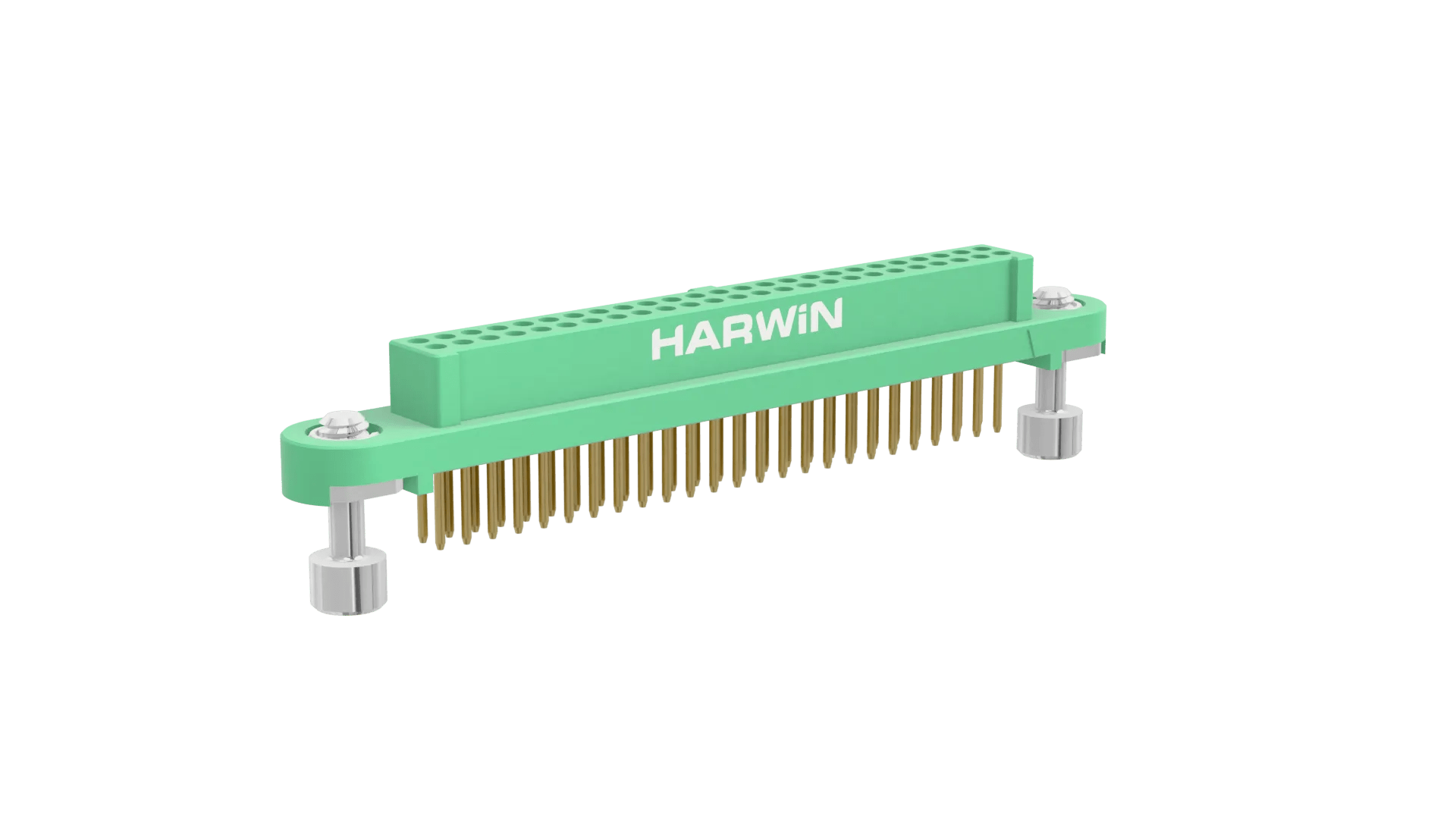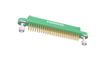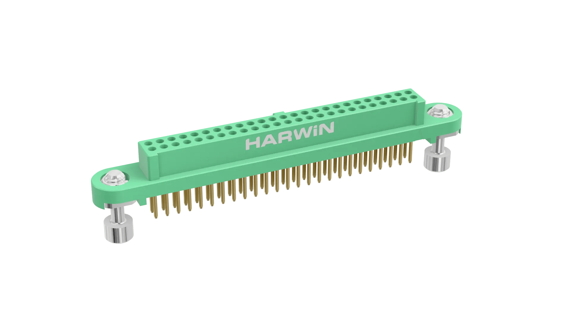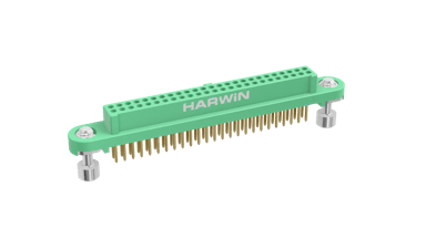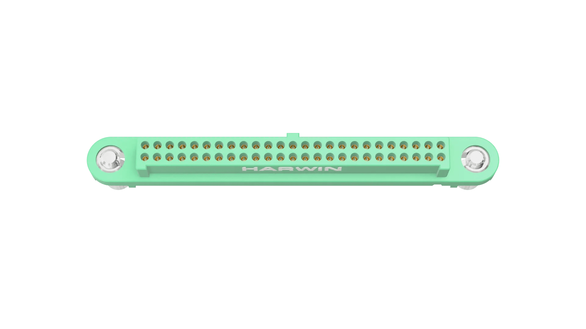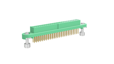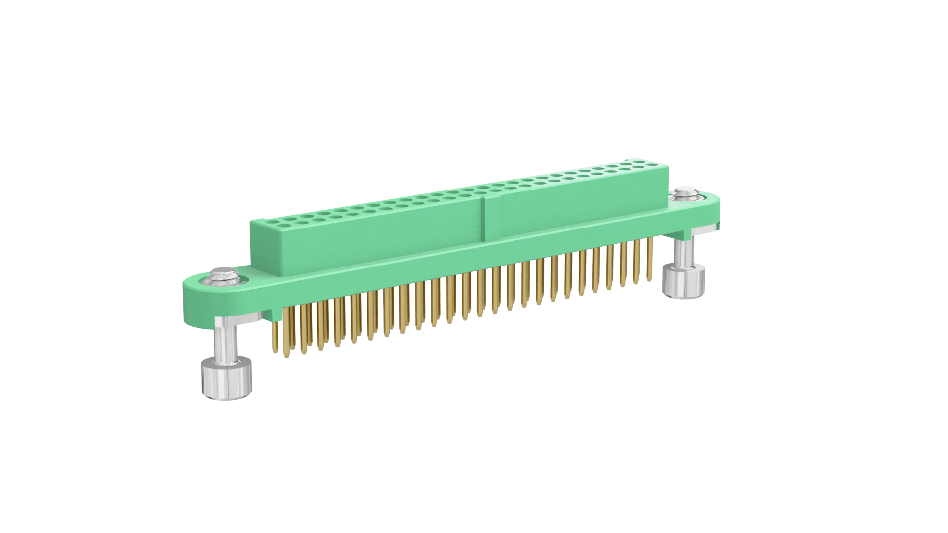 Female Double Row Vertical 3mm PC Tail connector - 50 contacts (25+25). Fitted with floating Screw-Lok fixings, Hexagonal socket head, Mate-before-Lock.