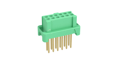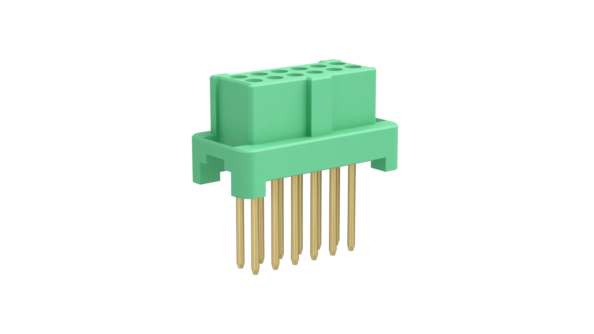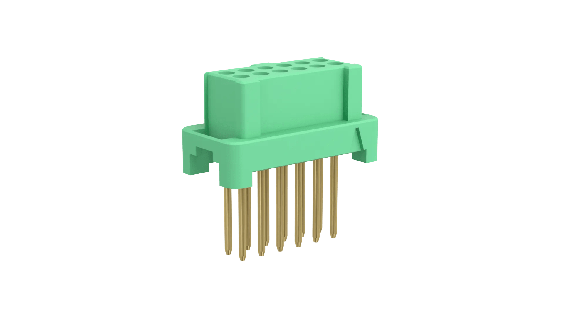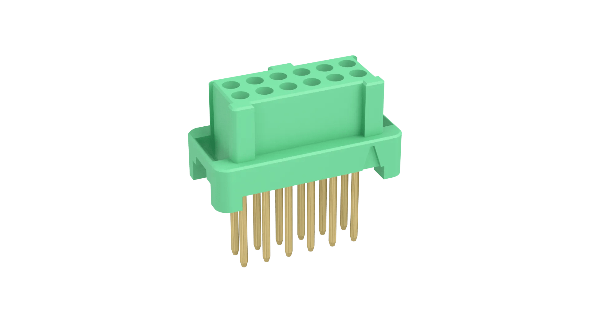 Female Double Row Vertical 4.5mm PC Tail connector - 12 contacts (6+6). Compatible housing style for male connectors with latches.