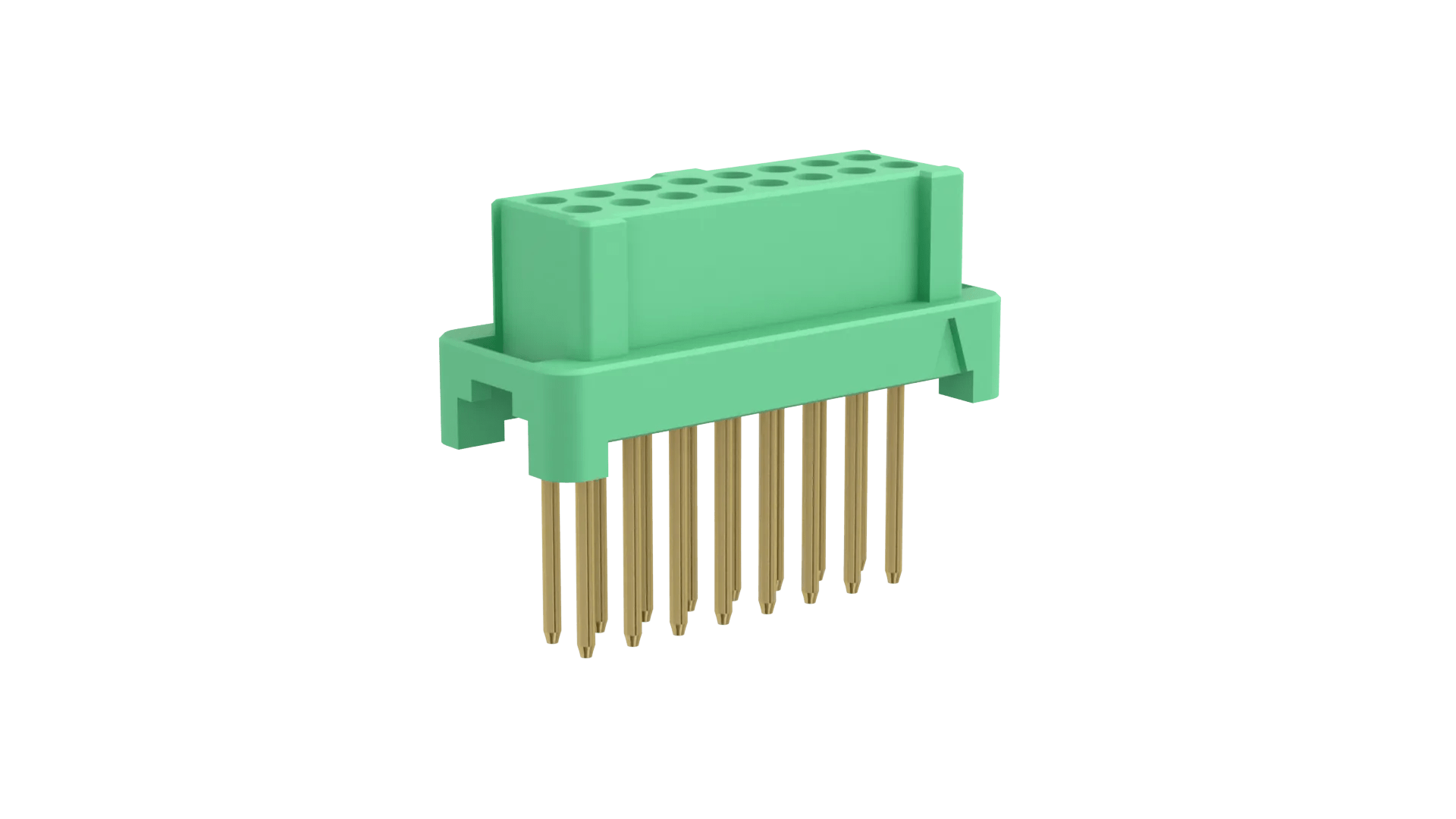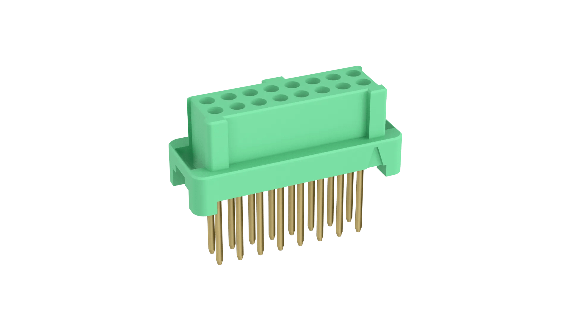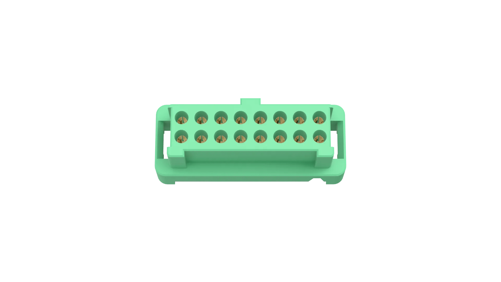 Female Double Row Vertical 4.5mm PC Tail connector - 16 contacts (8+8). Compatible housing style for male connectors with latches.