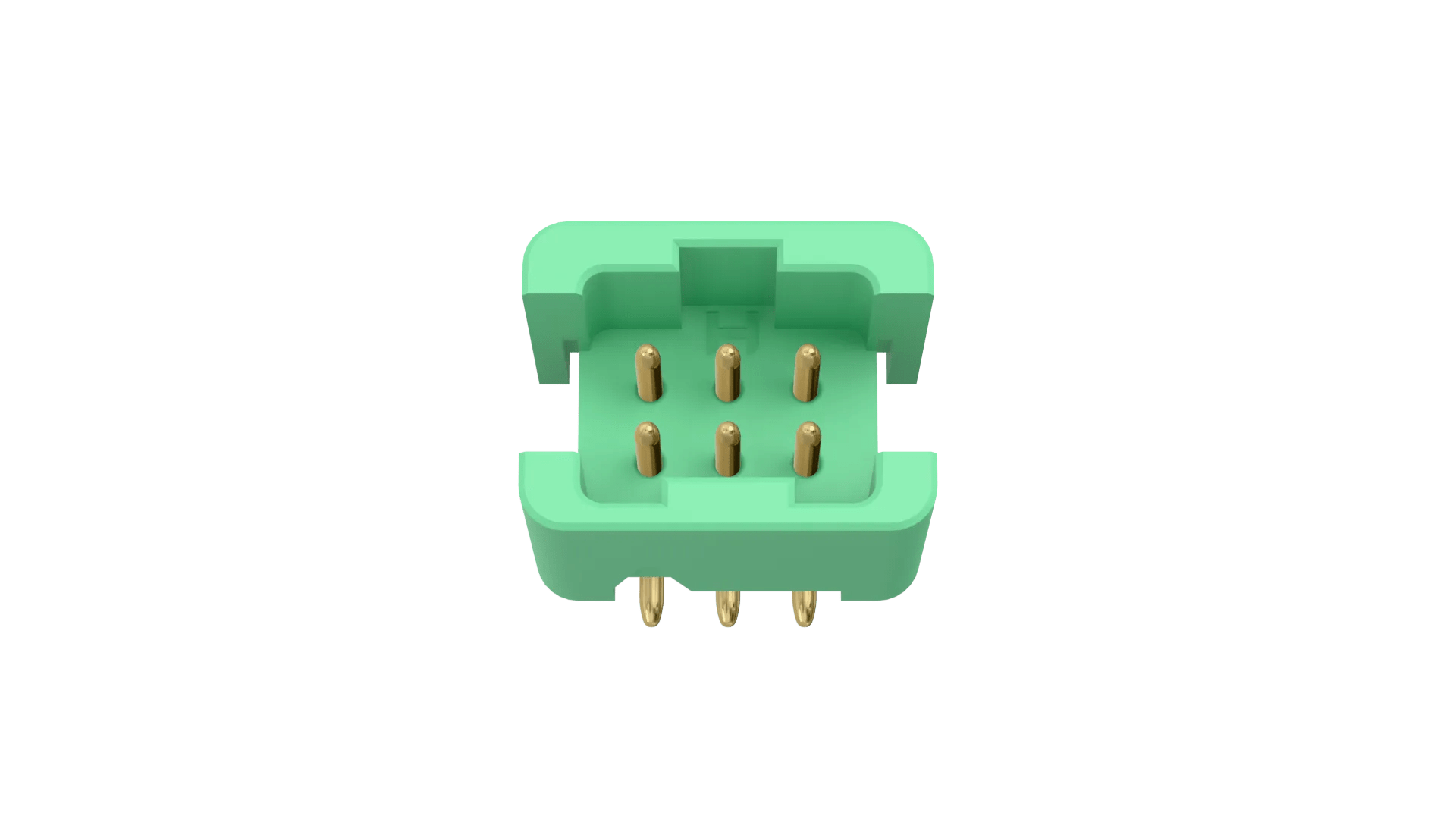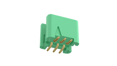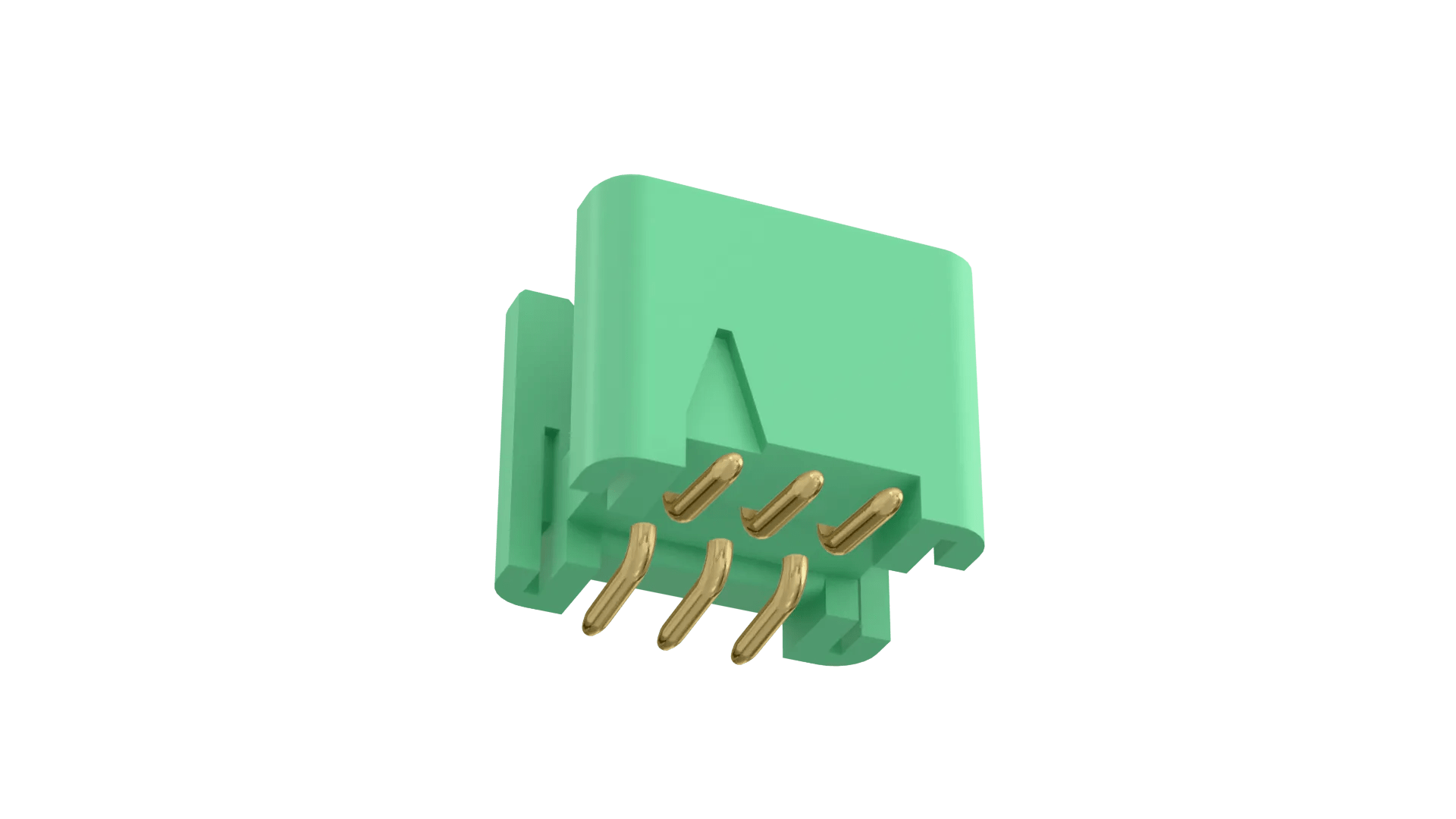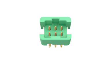 Double Row male Surface Mount connector, no latches - 6 contacts (3+3). Connector housings are not fitted with latches.