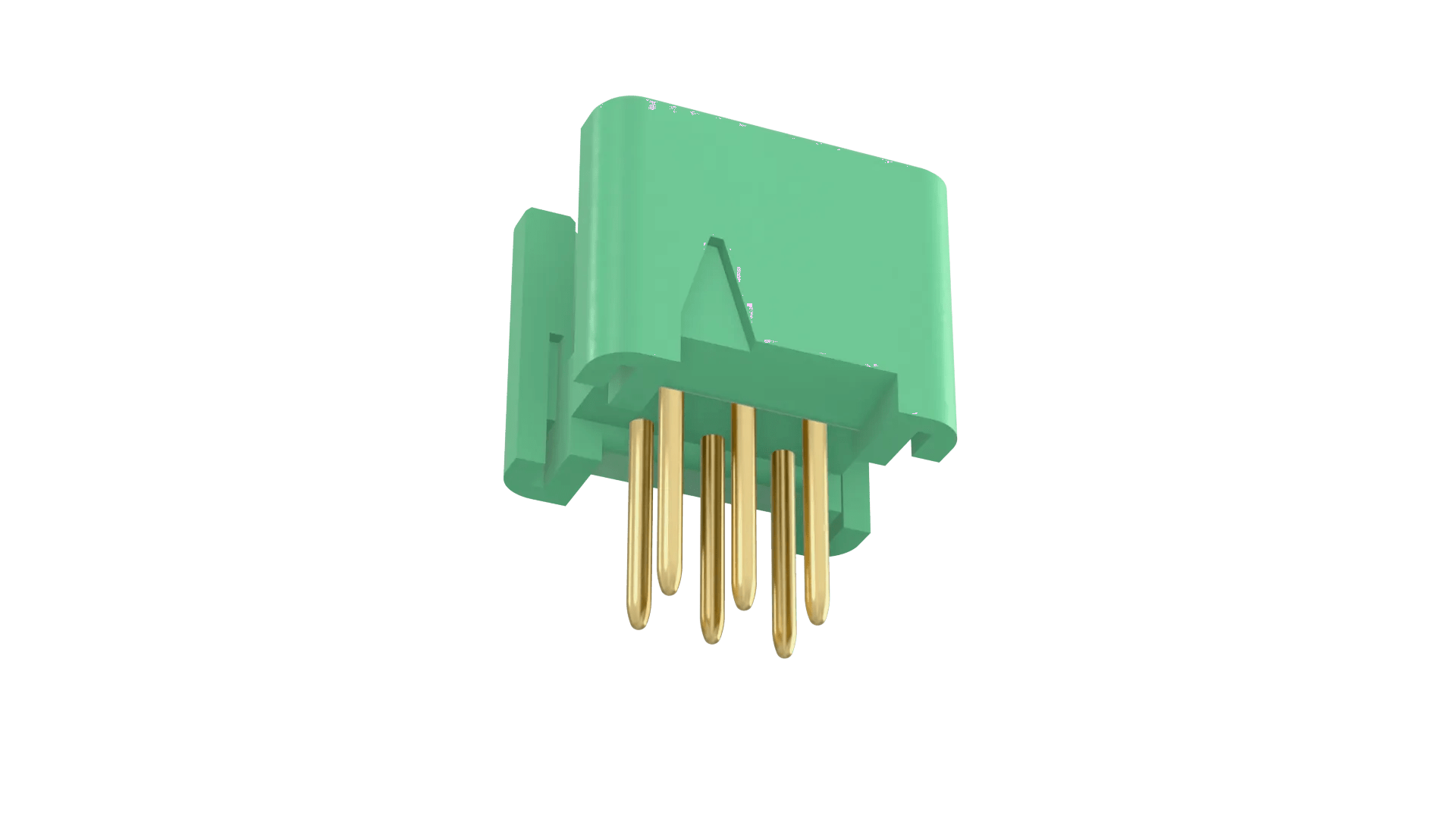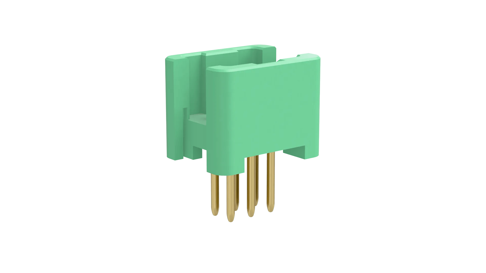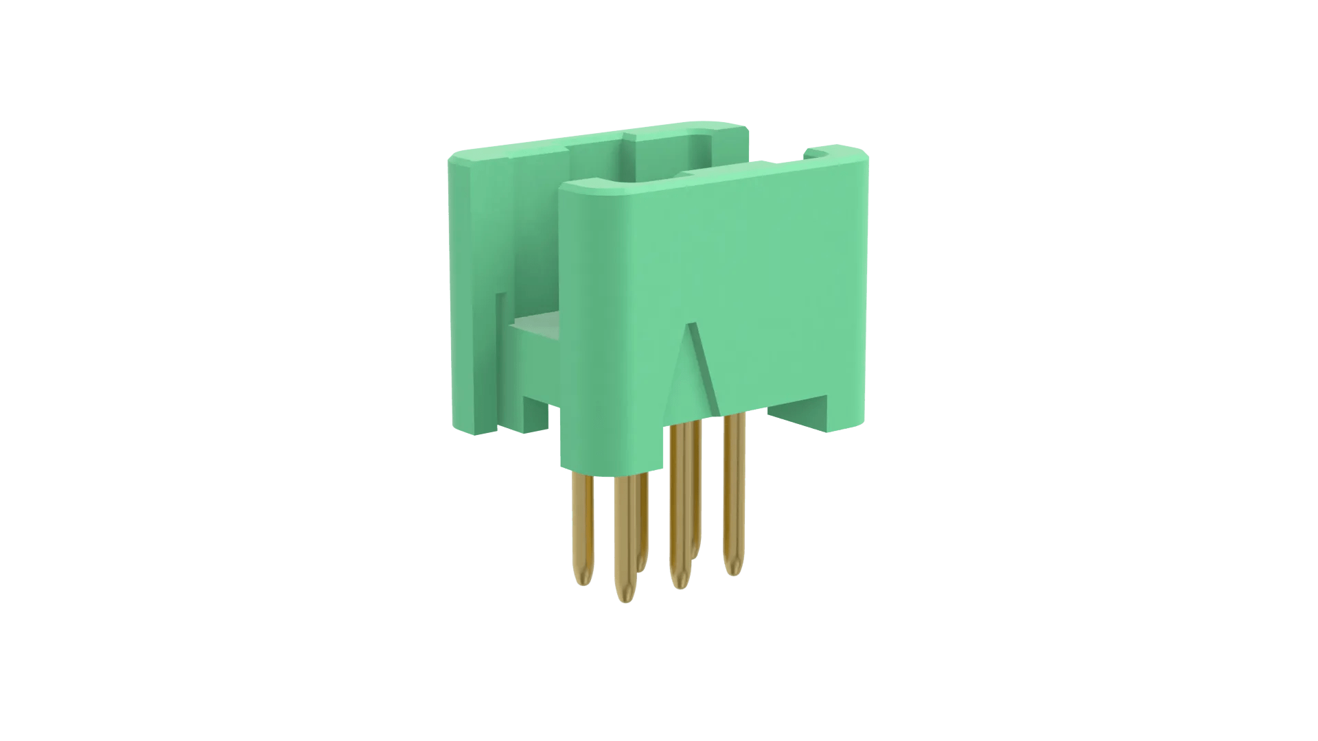 Double Row male 3mm PC Tail connector, no latches - 6 contacts (3+3). Connector housings are not fitted with latches.