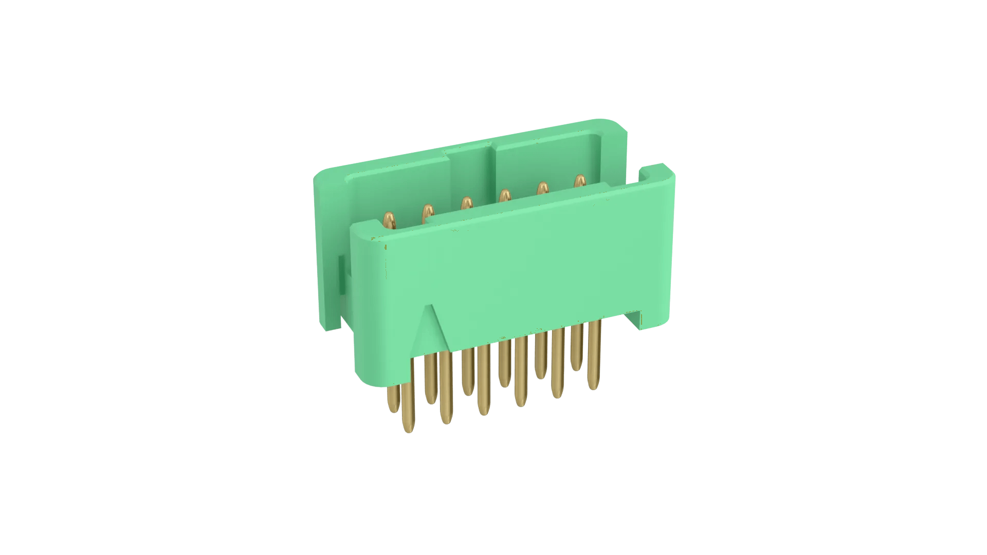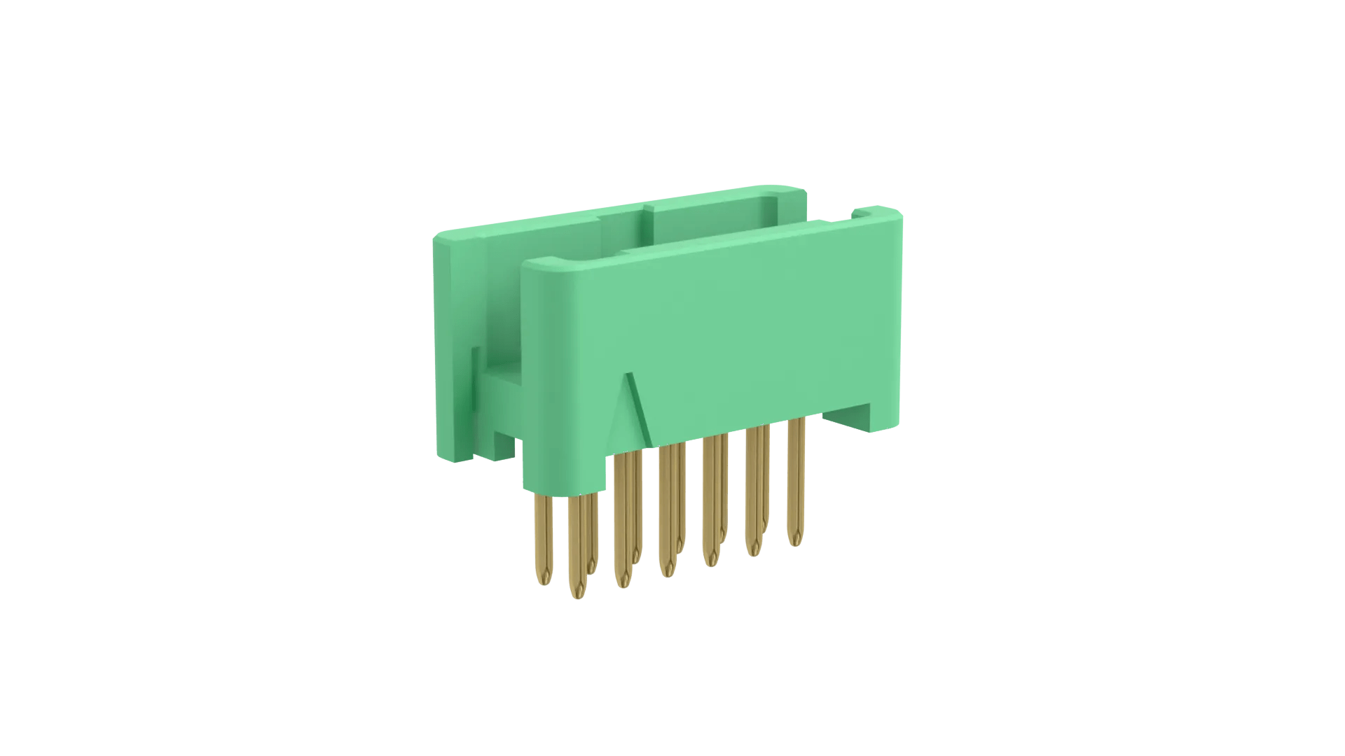 Double Row male 3mm PC Tail connector, no latches - 12 contacts (6+6). Connector housings are not fitted with latches.