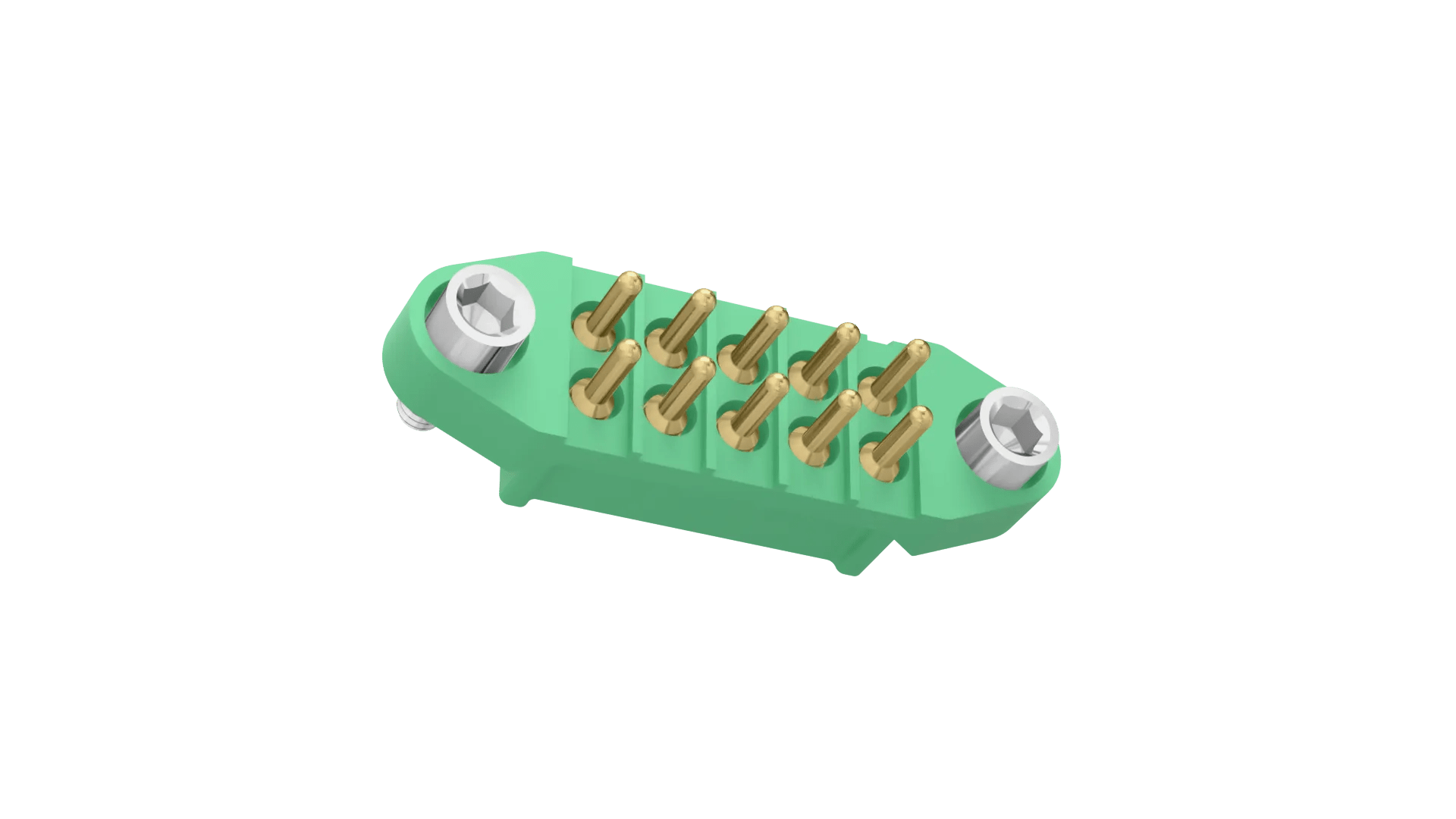 Double Row Vertical Female Throughboard connector with 3.2mm PC Tail - 10 contacts (5+5). Gold finish on contact area and termination.