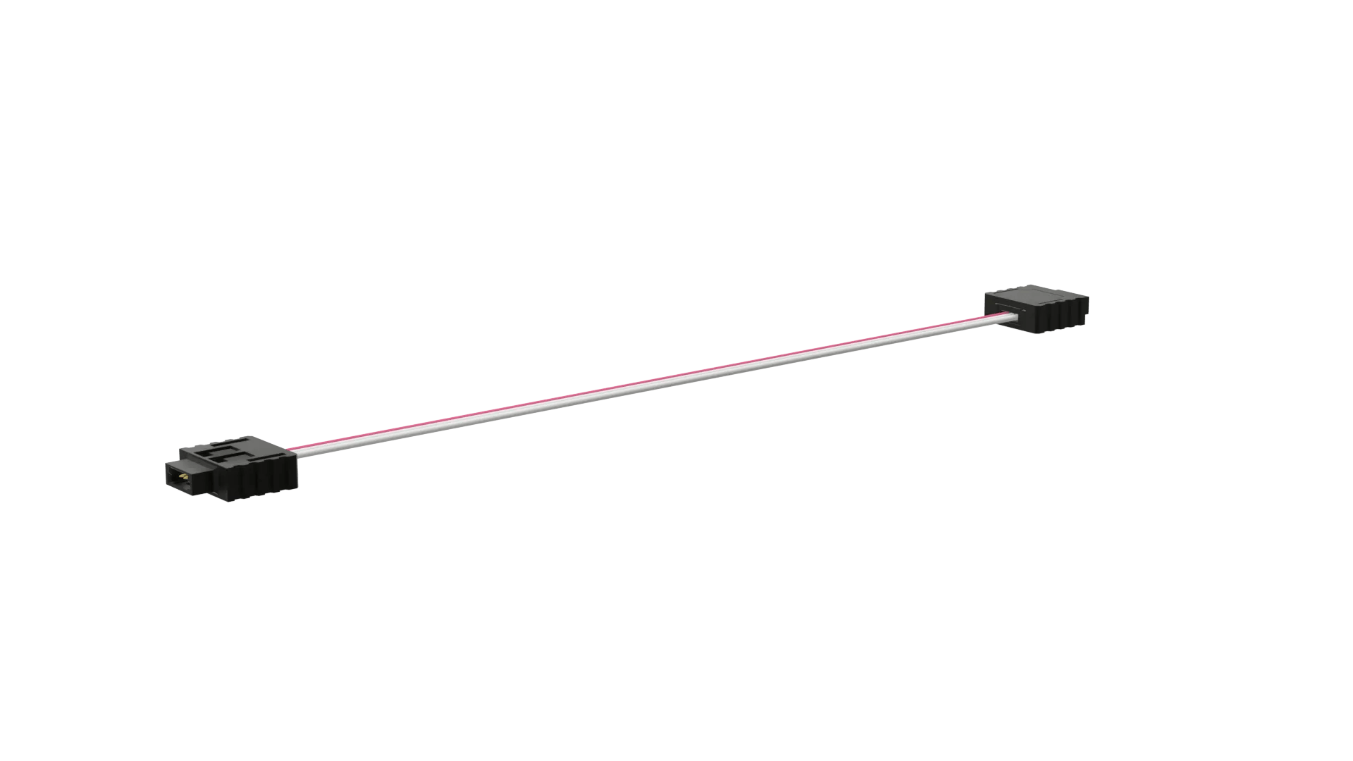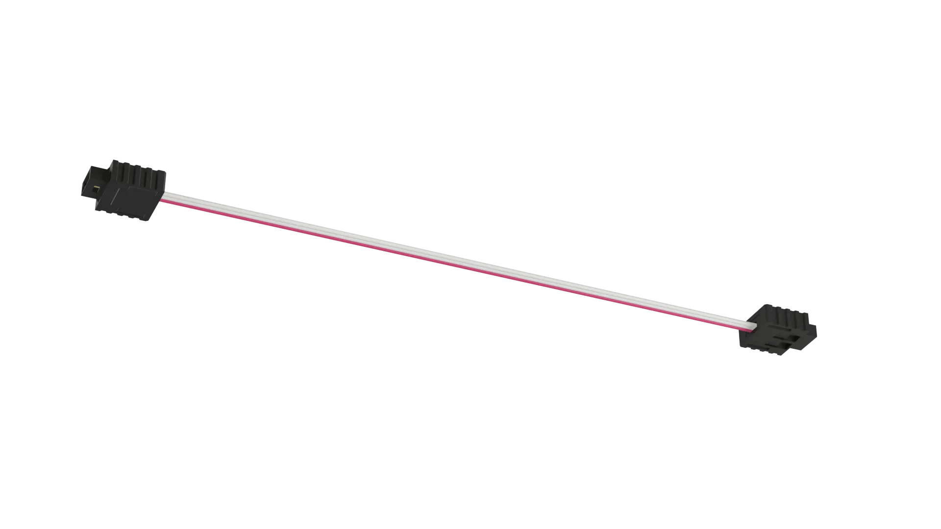 Male-to-Male with UL2678 26 AWG ribbon cable, 300mm (12") long - 3 contacts. Connection is inline with the cable.