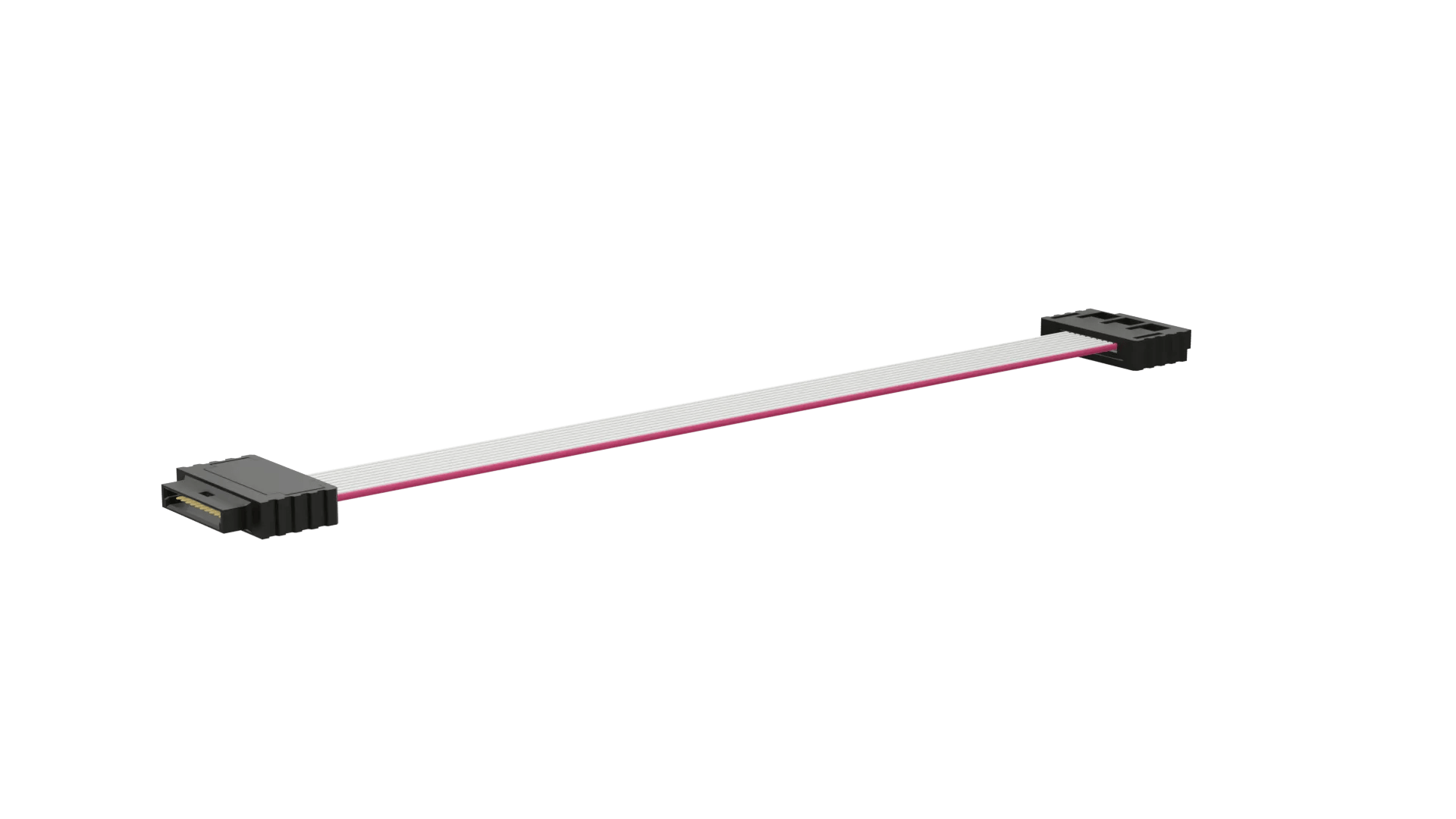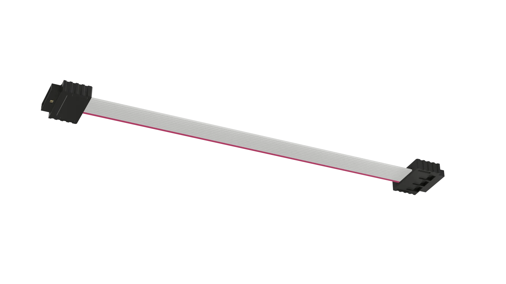 Male-to-Male with UL2678 26 AWG ribbon cable, 300mm (12") long - 10 contacts. Connection is inline with the cable.
