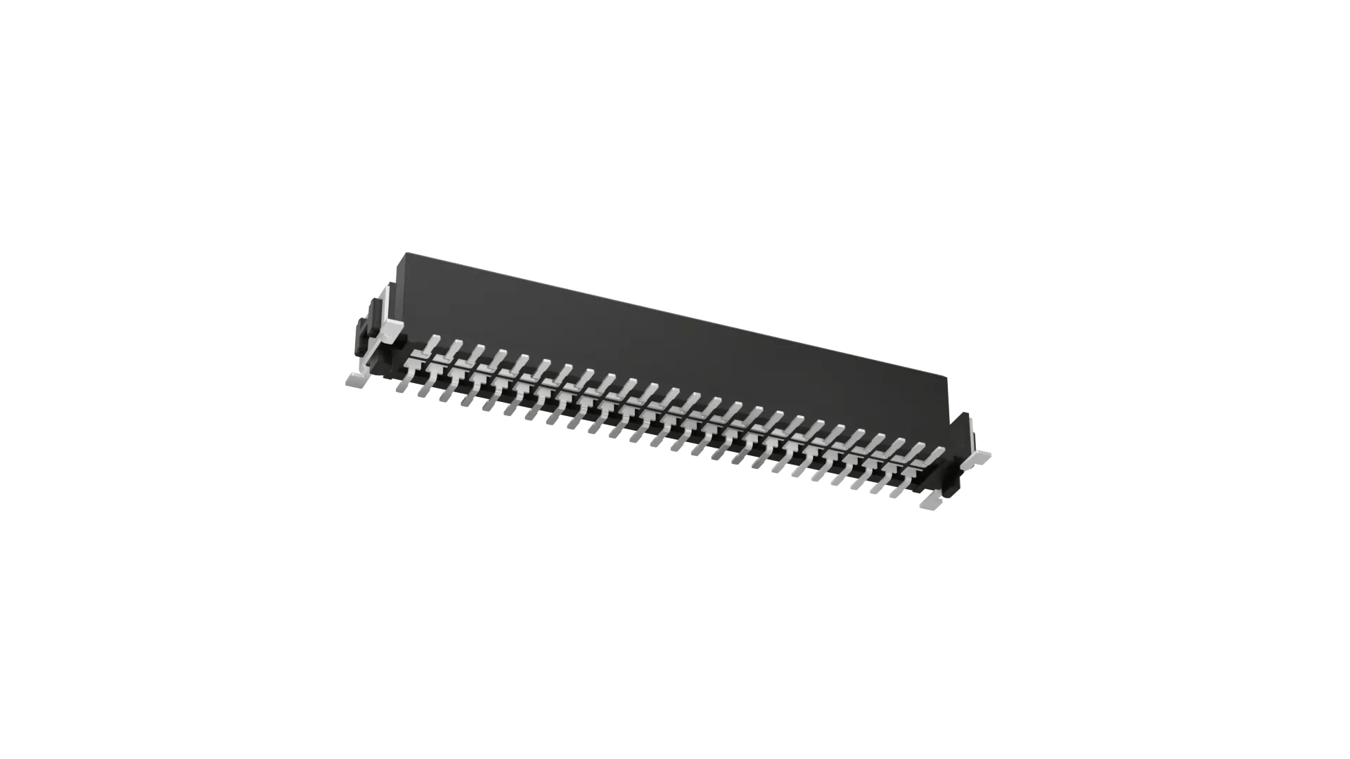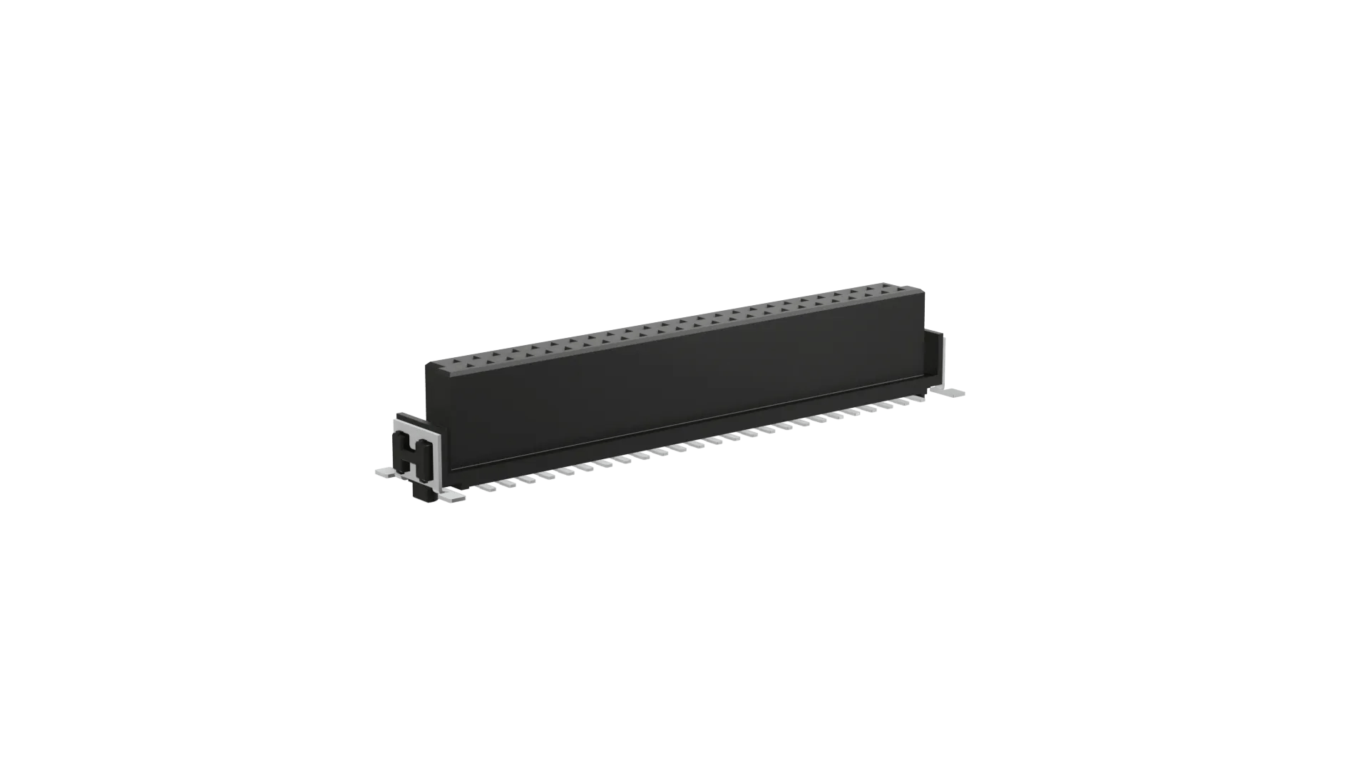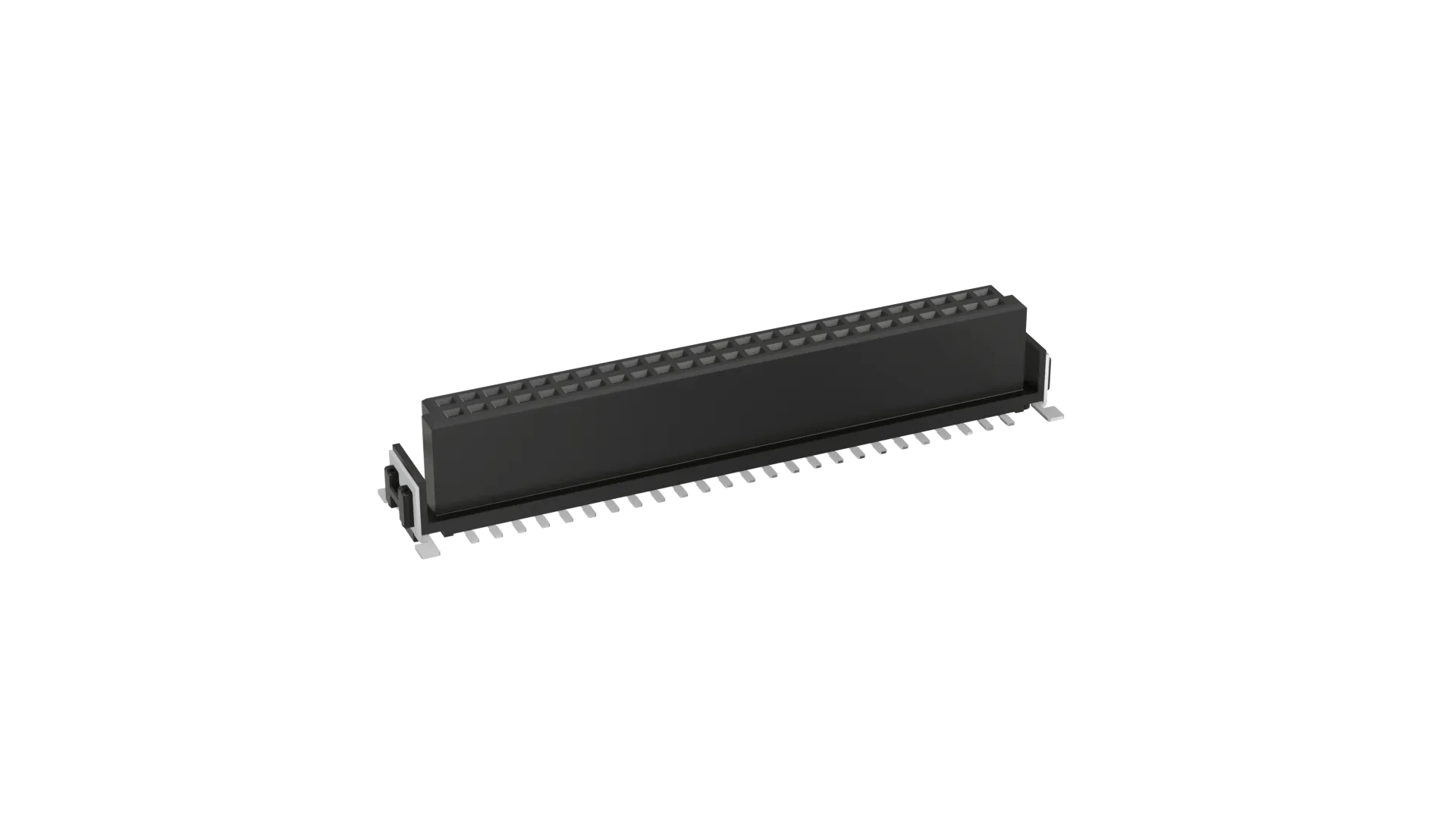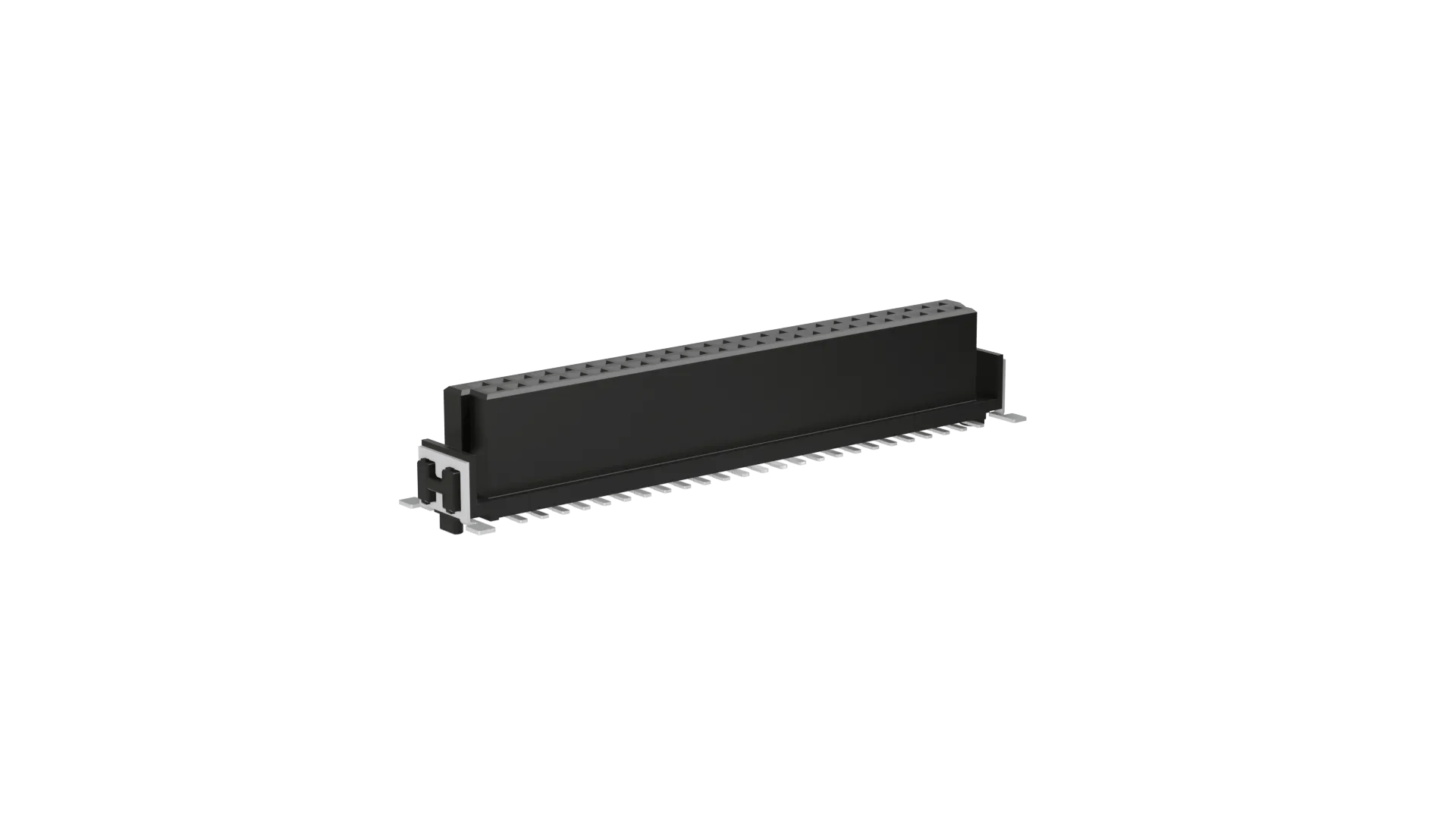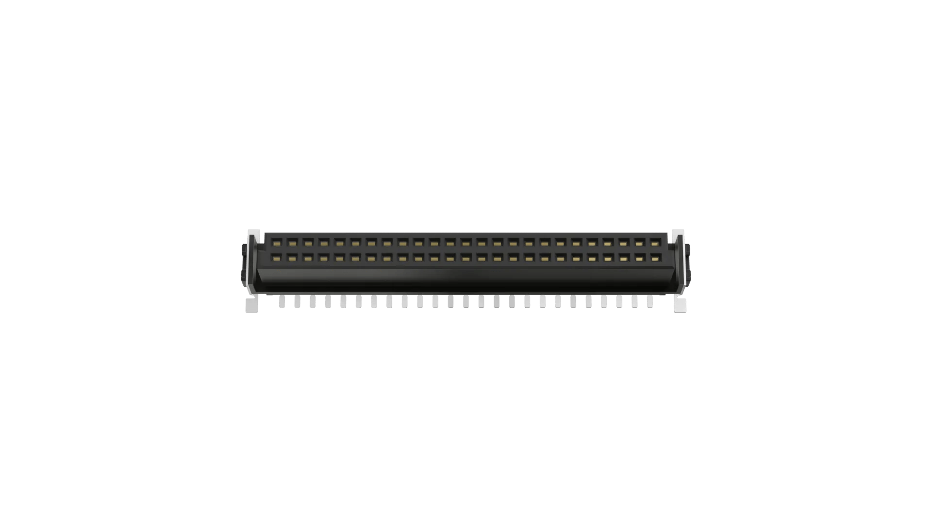 Double Row Surface Mount, 6.25mm connector height, shrouded polarized connector - 50 contacts (25+25). Location pegs, surface mount hold-down retaining tabs for additional solder strength.