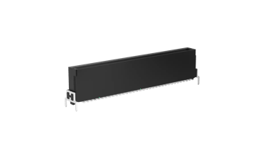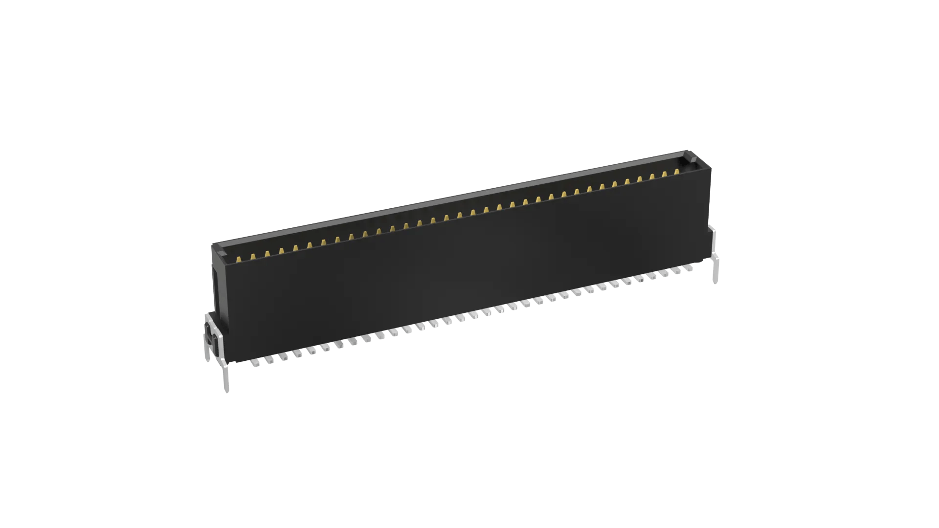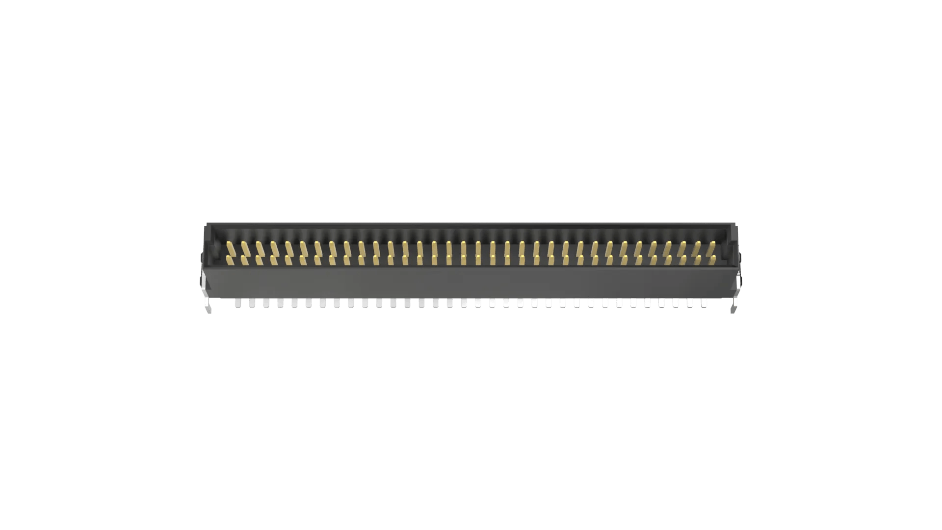 Double Row Surface Mount, 9.85mm connector height, shrouded polarized connector - 68 contacts (34+34). Location pegs, throughboard hold-down retaining tabs for additional solder strength.