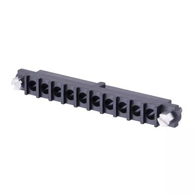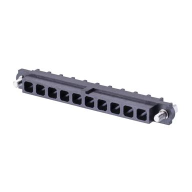 Single row polarized Female cable connector housing - 10 contact. Fitted with floating jackscrews, Hexagonal slotted head.