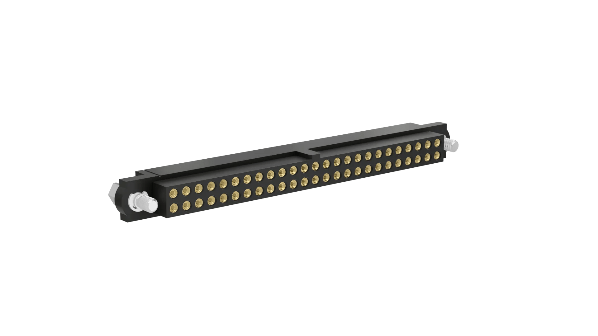 Complete kit: housing with Hexagonal slotted jackscrews fitted, 50 x barrel crimp contacts loose - Gold finish on contact area and termination.