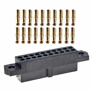 Complete kit: housing (no jackscrews), 4 x barrel crimp contacts loose - Gold finish on contact area and termination.