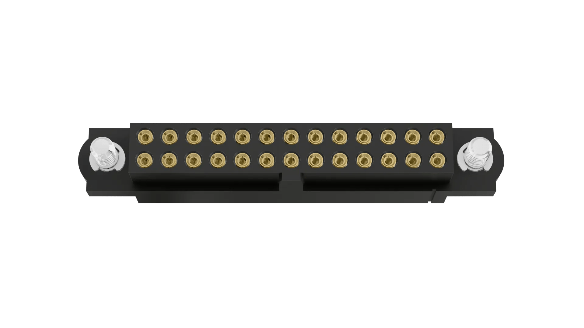 Complete kit: housing with hex socket head (Allen) jackscrews fitted, 26 x barrel crimp contacts loose - Gold finish on contact area and termination.