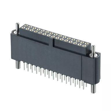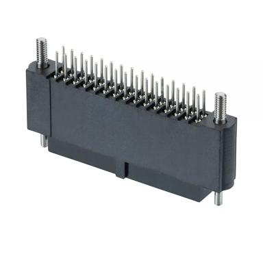 Double Row, 4.4mm PC Tail extended height connector with Guide pin + 5mm board mount studs - 30 contacts (15+15). Board-to-board height is 17.15mm when mated to a male vertical throughboard connector.