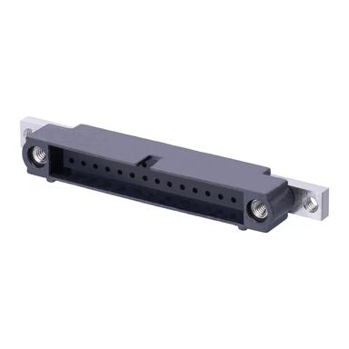 Complete kit: housing with internally threaded jackscrews and extended lugs for rear panel mount fitted, 28 x contacts loose - Gold finish on contact area and termination.