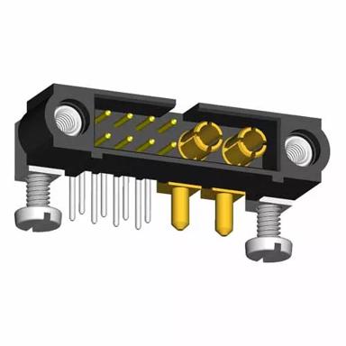 Jackscrews + 5mm board mount (with slotted bolt), 8 x signal and 2 x power contacts assembled for horizontal PCB connection. 3mm length PC Tail signal contacts, 3.5mm length PC Tail power contacts.