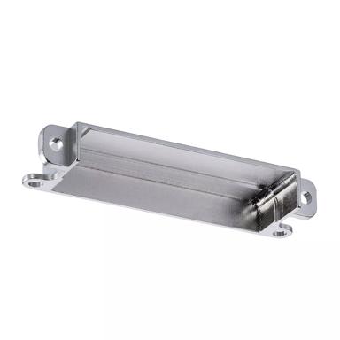Aluminium alloy Metal Backshell with nickel plating, for horizontal PCB-mounted connectors and rear panel mounting - Throughboard or Surface Mount. Accessory only - connectors to be purchased separately.