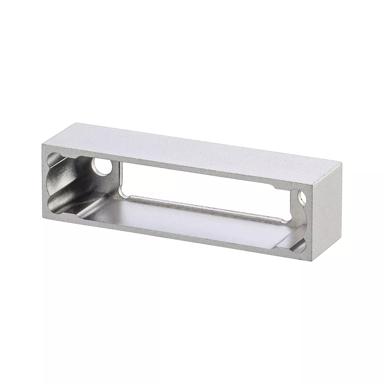 Aluminium alloy Metal Backshell with nickel plating, for front panel mounted cable connectors or vertical PCB-mounted connectors.