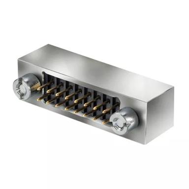 Aluminium alloy Metal Backshell with nickel plating, for front panel mounted cable connectors or vertical PCB-mounted connectors.