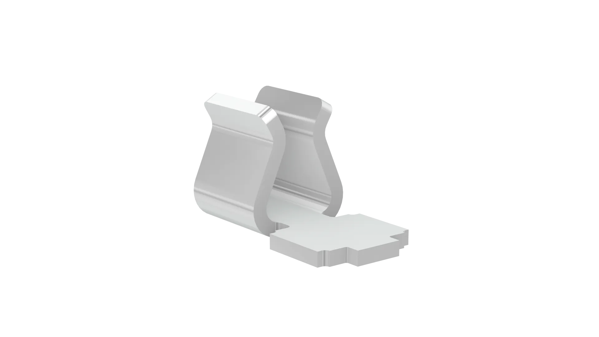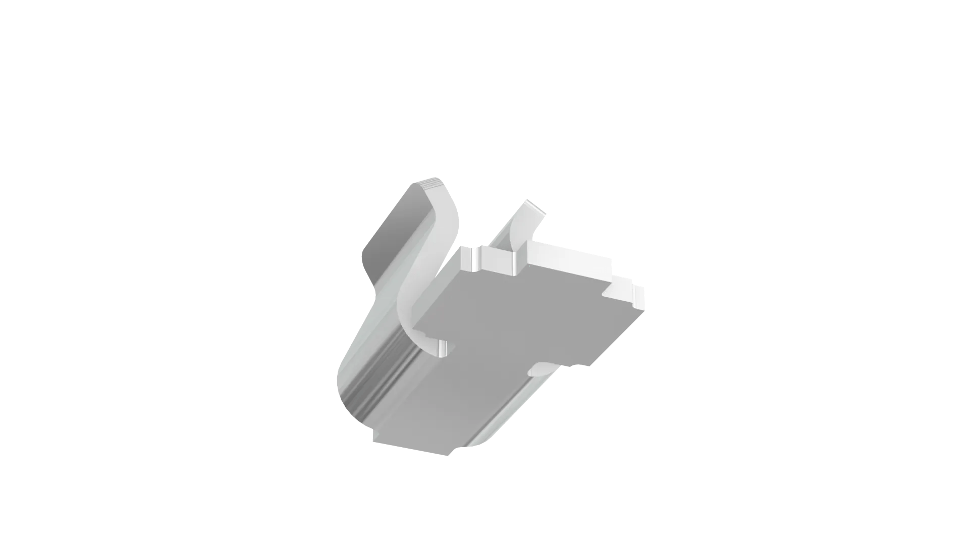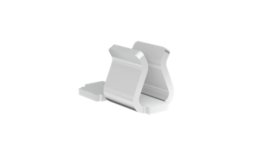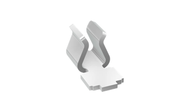 Surface mount top entry clip in a Compact size (2.3mm long, 1.28mm high), for 0.45-0.55mm shield thickness.
